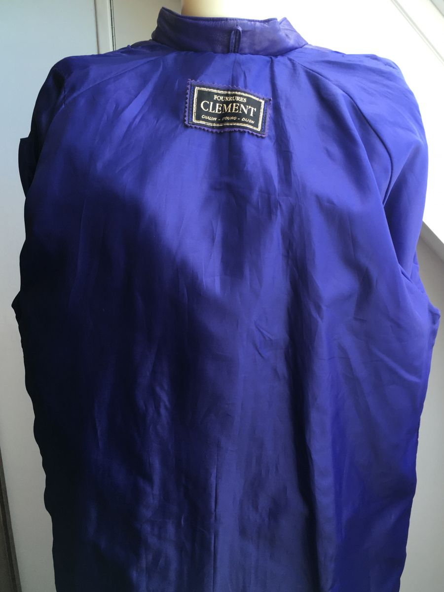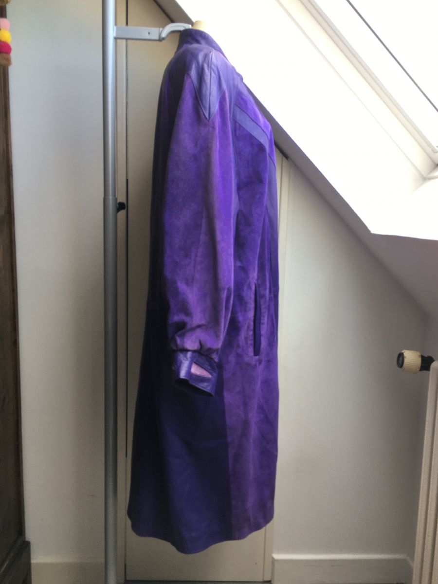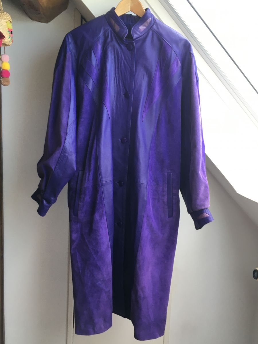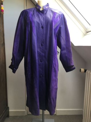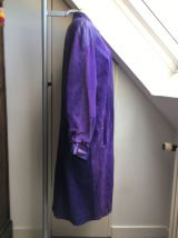 Manteau long en cuir violet vintage.