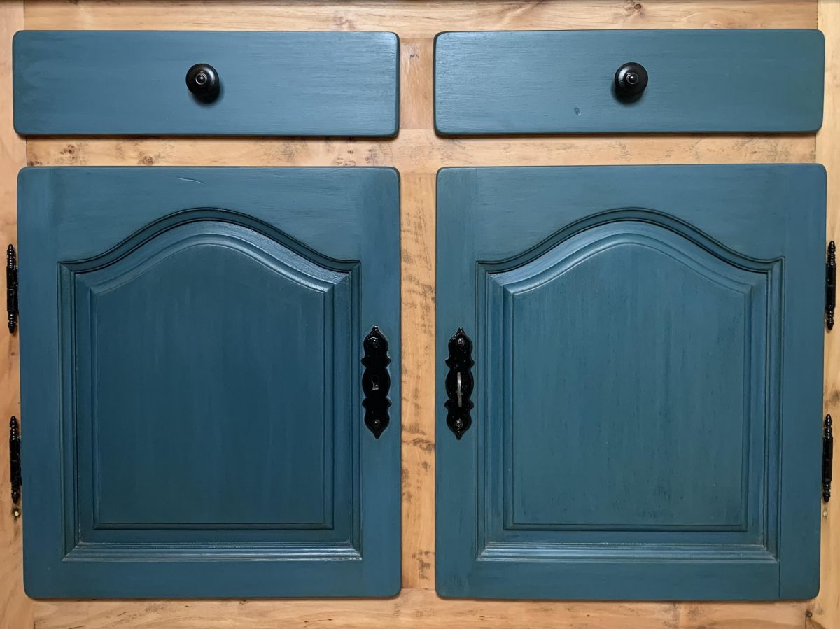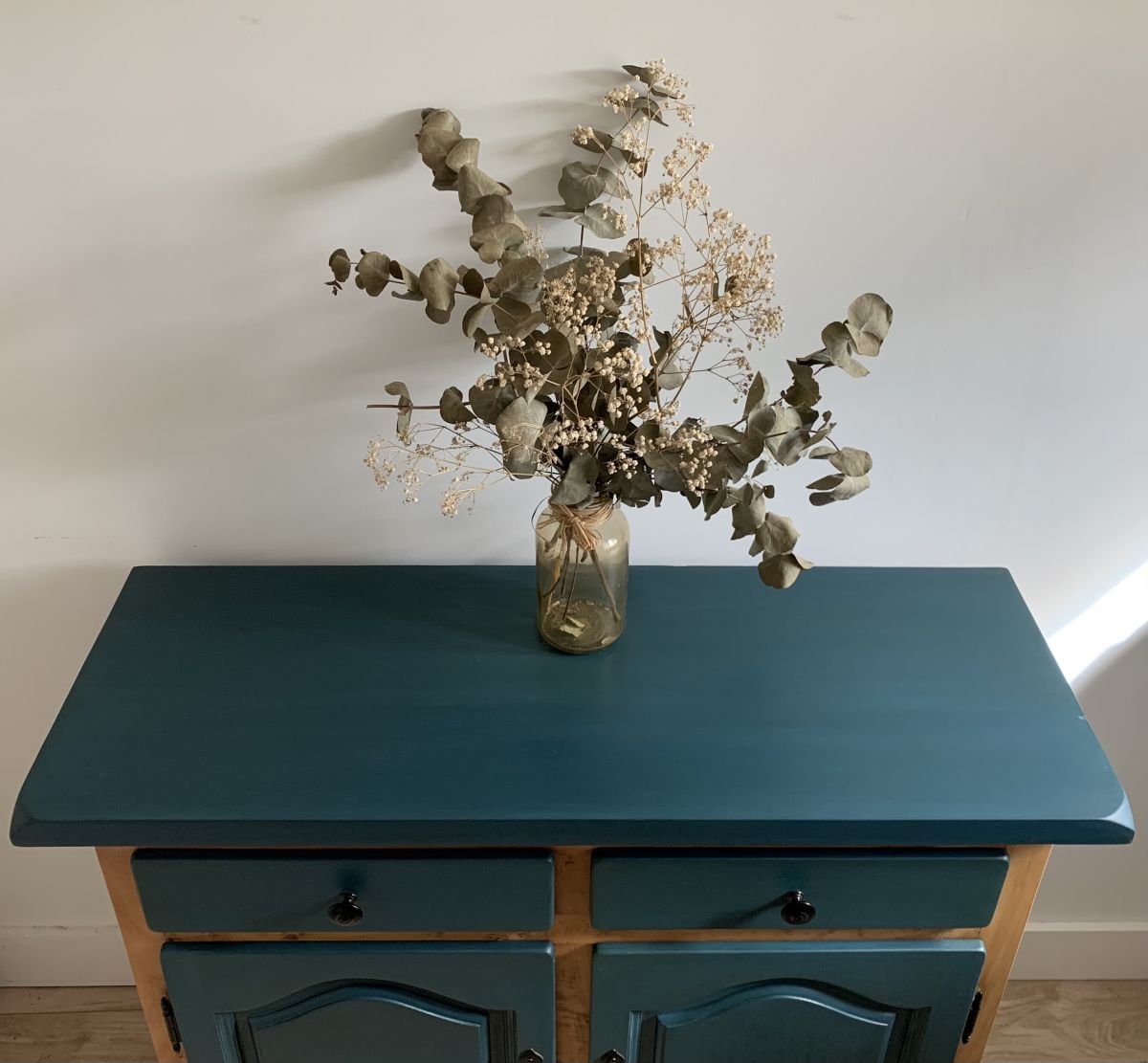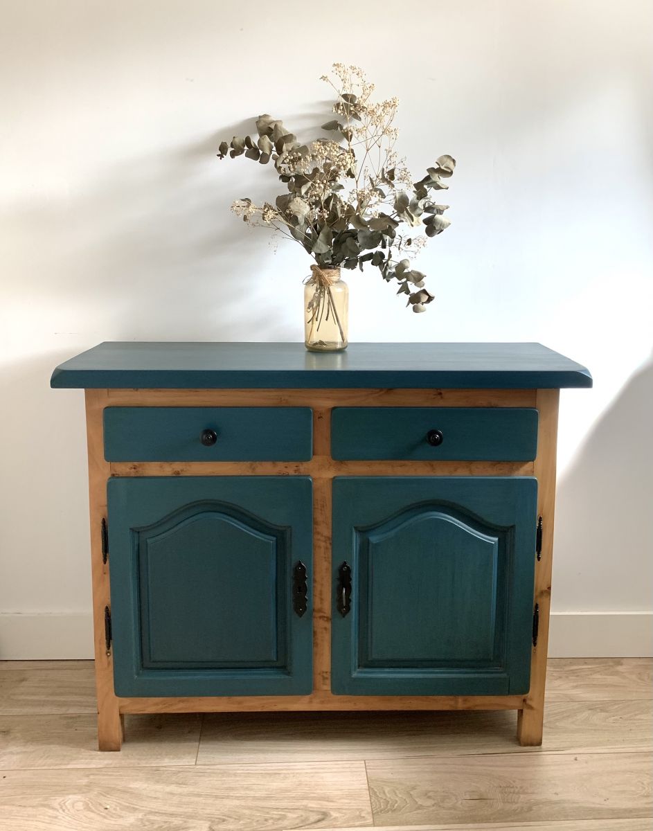 Ce joli buffet ancien a bénéficié d'une belle restauration : il a été décapé, poncé, peint et verni.