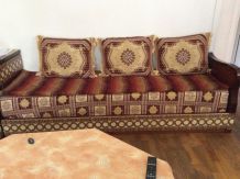 La structure est en bois recouverte de tissus , le fauteuil est composé de 6 gros coussins sur le coté de 3 sièges et de 4 gros coussins sur le coté de 2 sièges. Il y a également 4 petits coussins de "decoration" assortis.