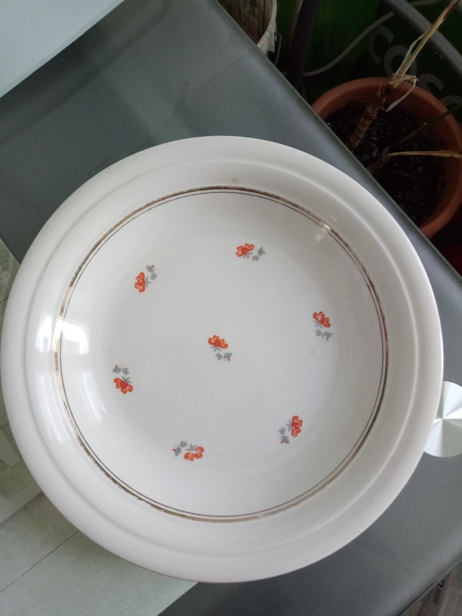 J'ai aussi 36 assiettes dont 6 creuses, la soupière, un saladier et un plat rond de la même série.
