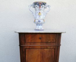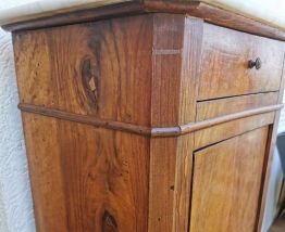 Table de chevet en noyer et marbre 40x29x76. Une fissure sur le marbre. Les 2 pieds nécessite une petite rénovation.
