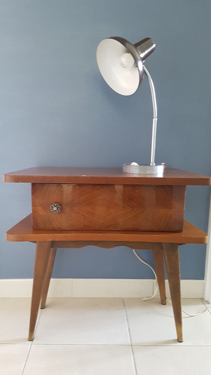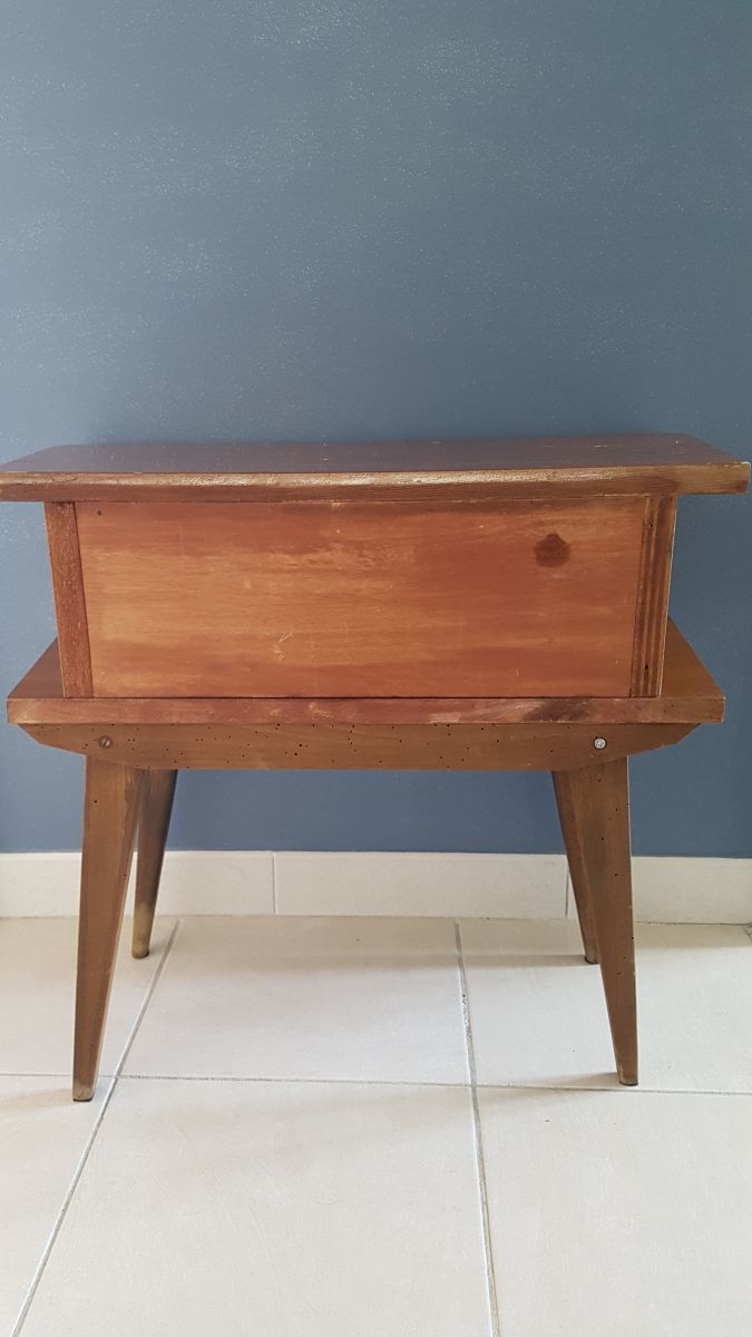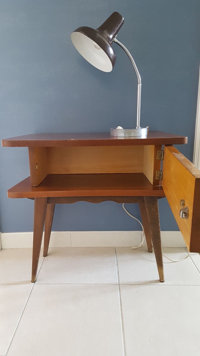 Belle table de chevet en bon état, seules qq marques d'usure sur le dessus. Parfaite pour donner une touche vintage dans une chambre ou un salon en bout de canapé ou table d'appoint pour accueillir un téléphone ou autre plante et objets de décoration. Dimensions