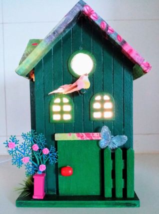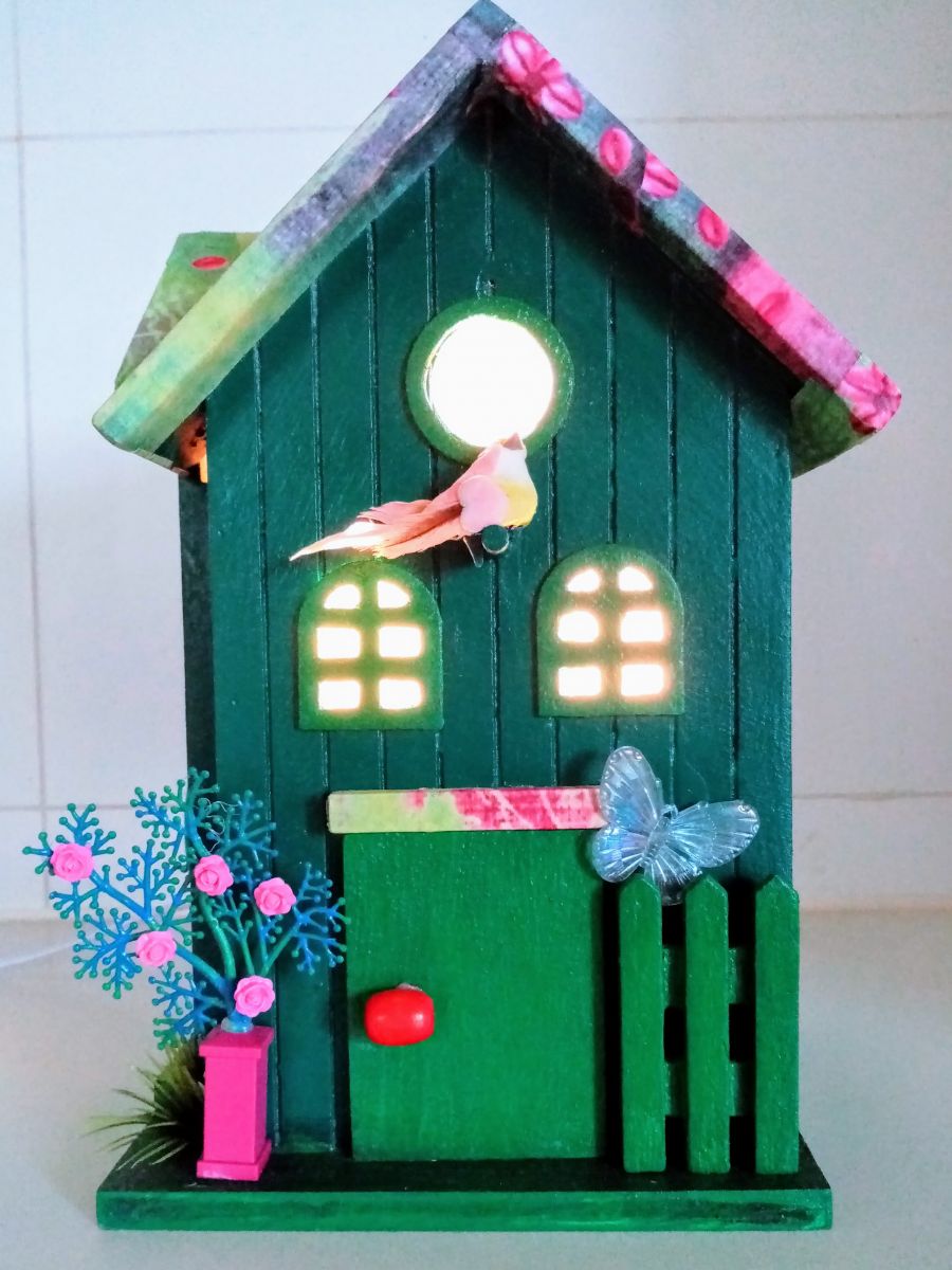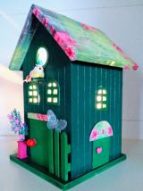 Lampe nichoir vert, lampe de chevet maison d'oiseau