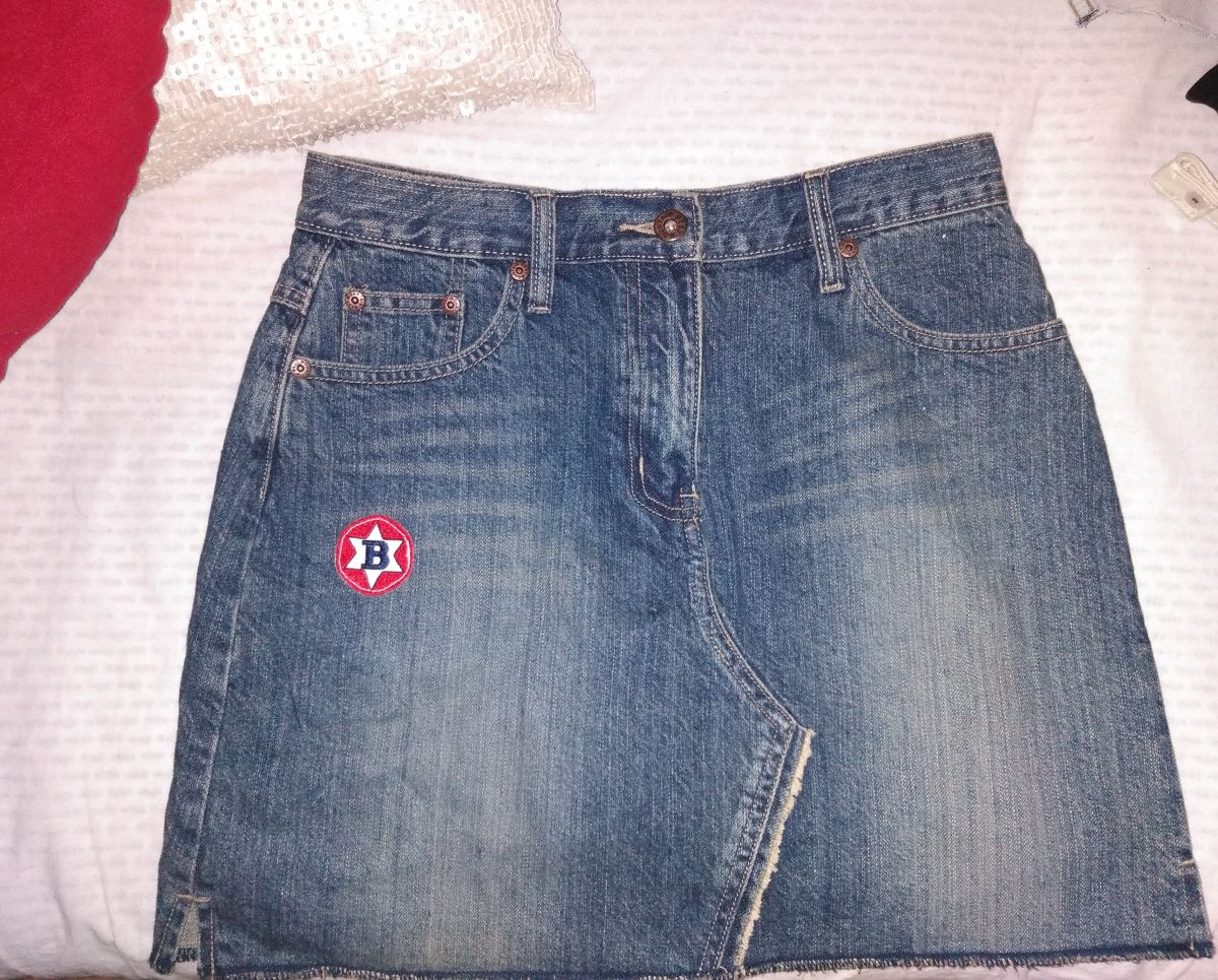 Jupe mini en jean patch brodé vintage femme fille Taille XXS