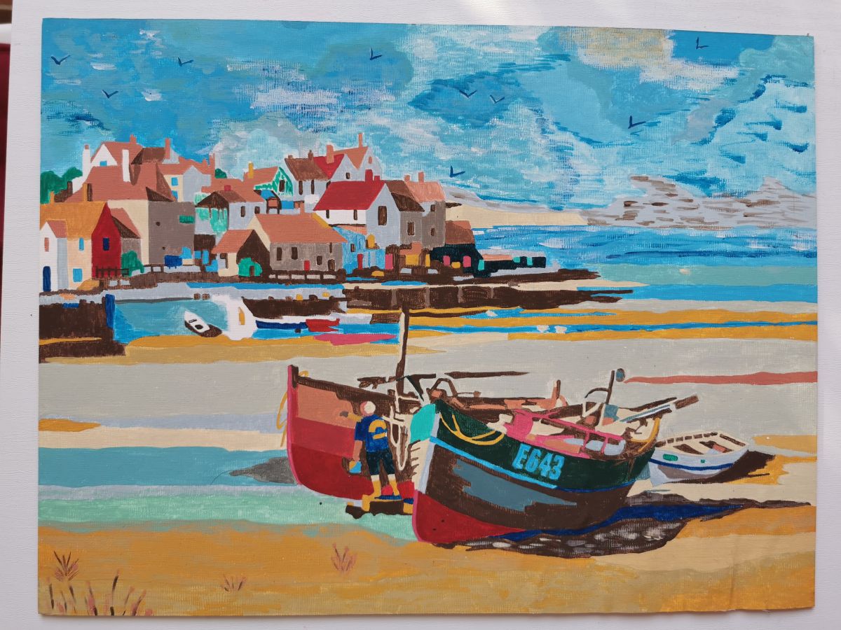 Belle peinture d'un artiste inconnu. Légèrement endommagé par l'eau. 40x30 cm