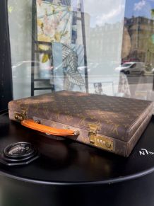 Sac panier en osier bois rotin et rabats/poignees cuir marron.