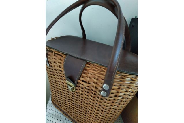 Sac cabas sacoche panier en osier cuir marron rétro vintage