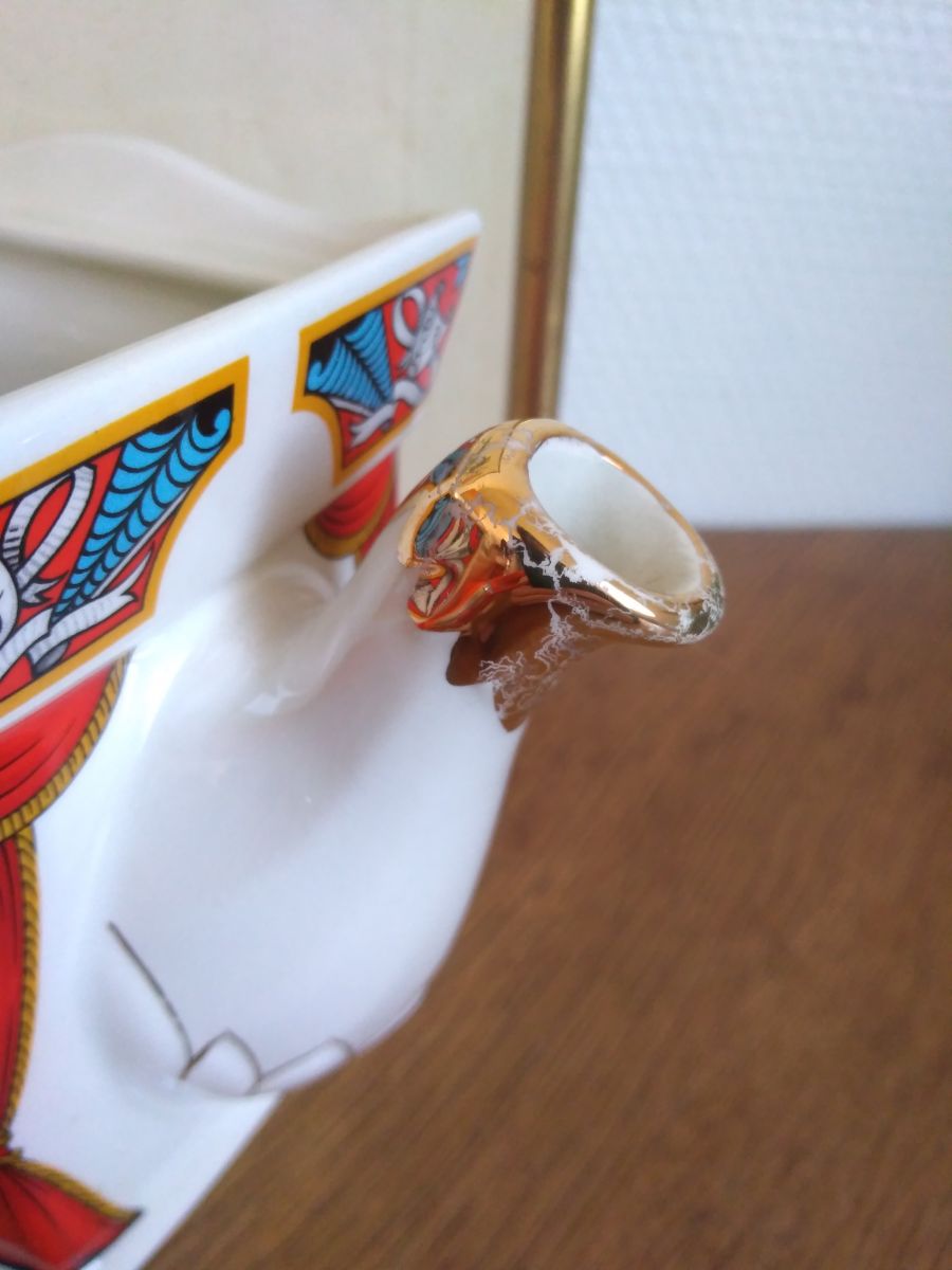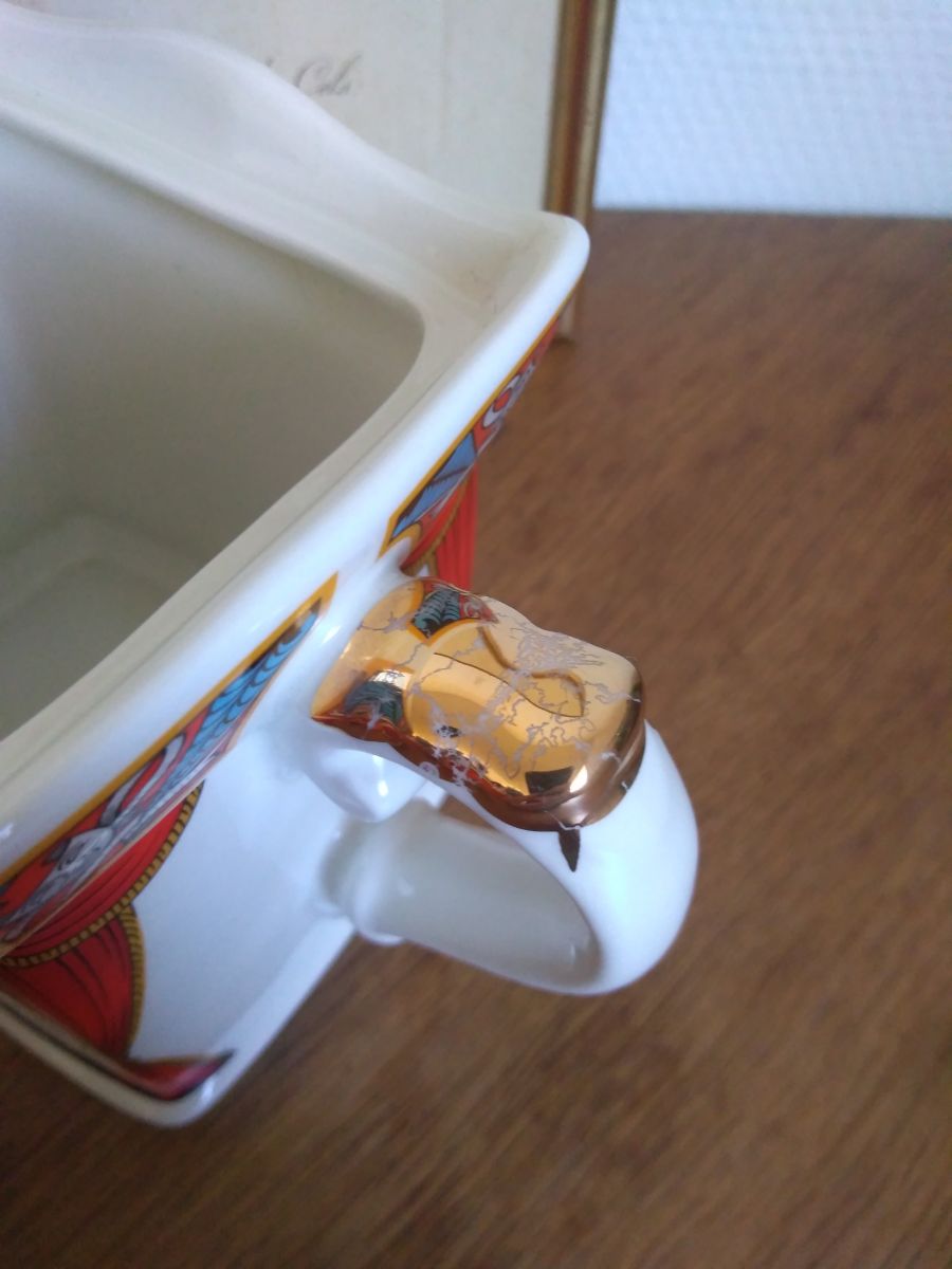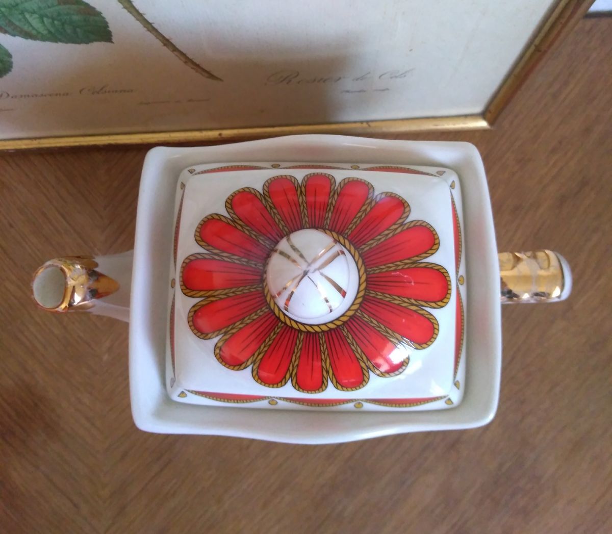 En excellent état! Les peintures dorées, sur l'anse ou le bec notamment, présentent des marques d'usure. Quelques marques d'usure en dessous, non visibles quand la théière est posée.