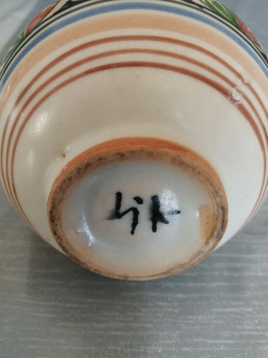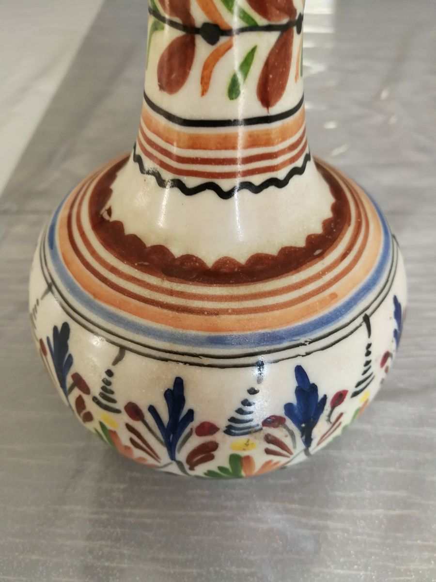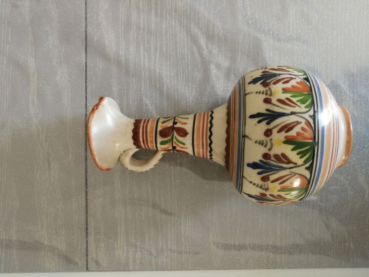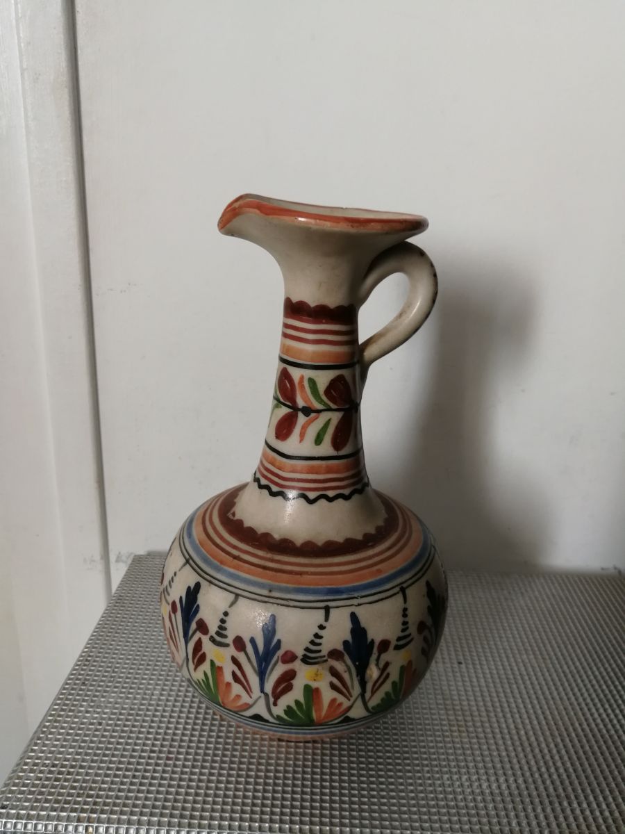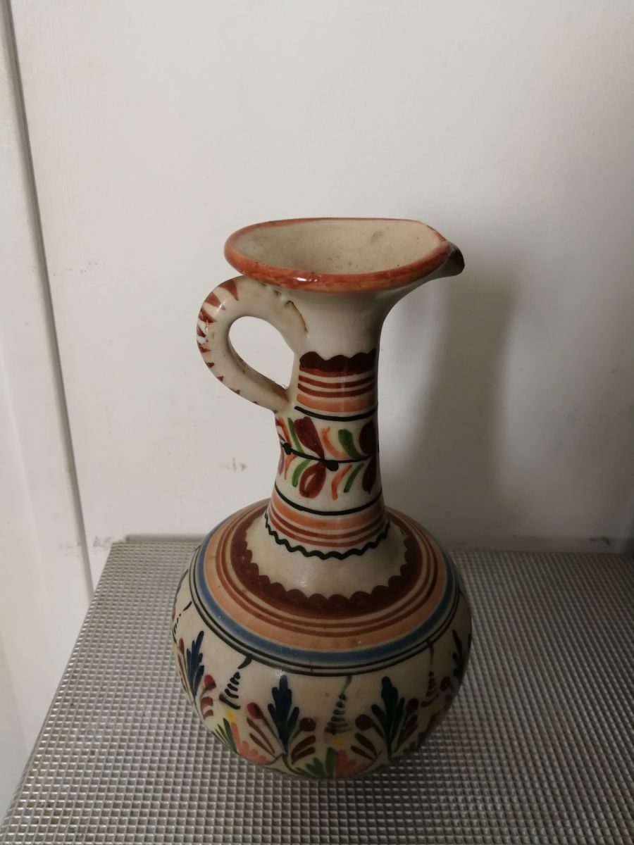 Petite Carafe à fleur en céramique, quelques traces d'usures sur le bord du bec.
