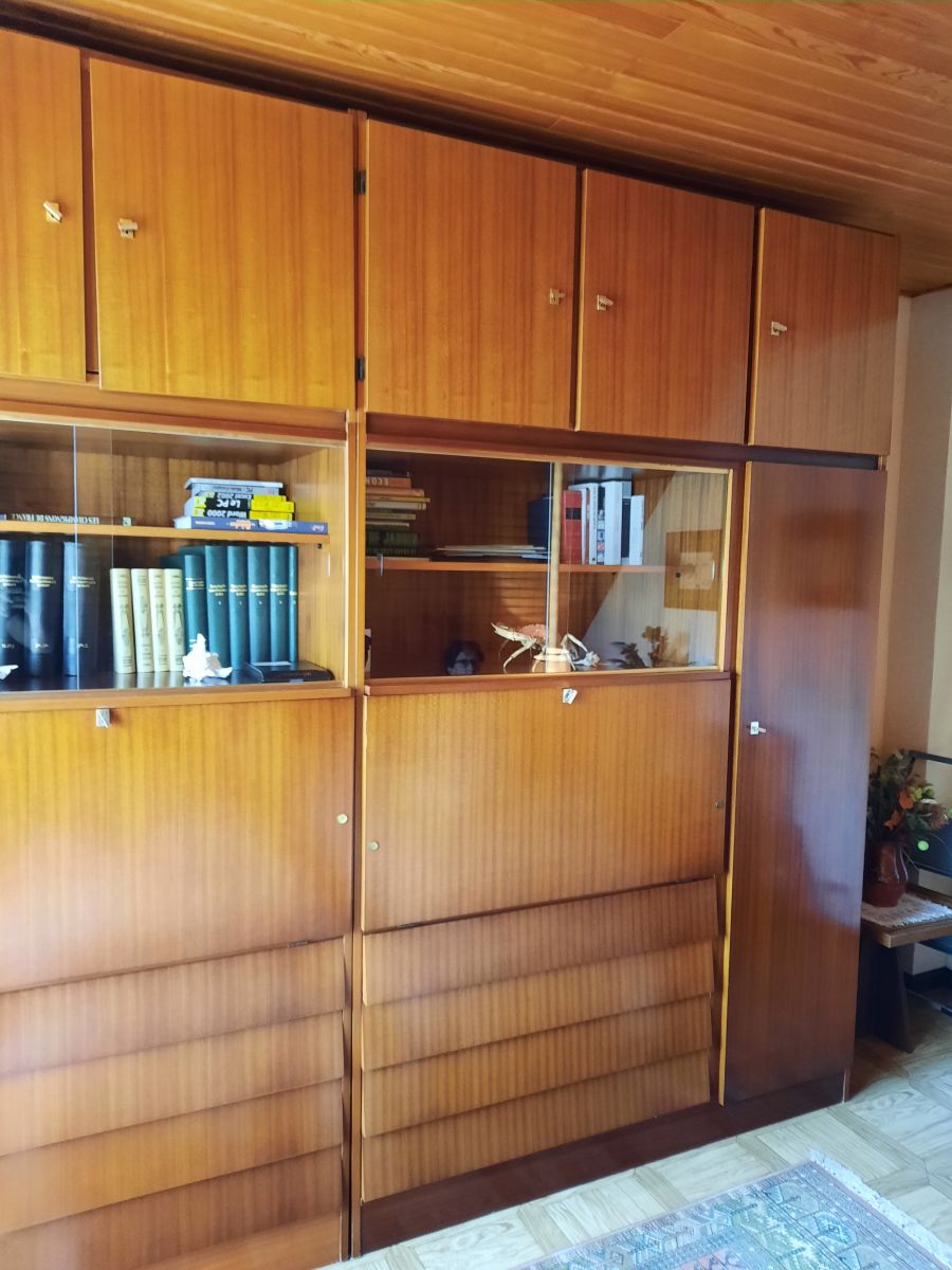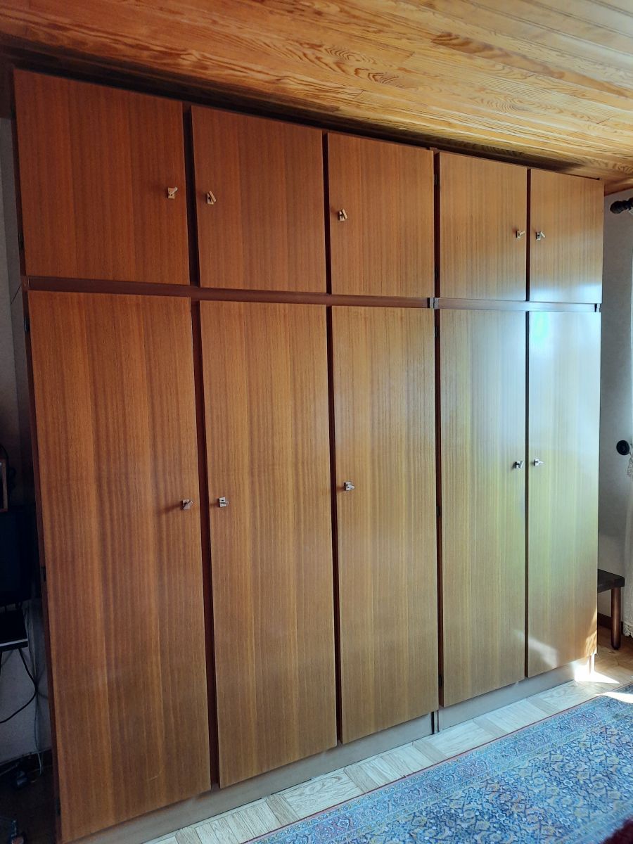 Ensemble d'armoires en bois, datant des années 70, en excellent état - une étiquette a l’intérieur des meubles semble indiquer qu'elles ont été produites par entreprise appelée MG - Rangement d’Édition (voir photo)