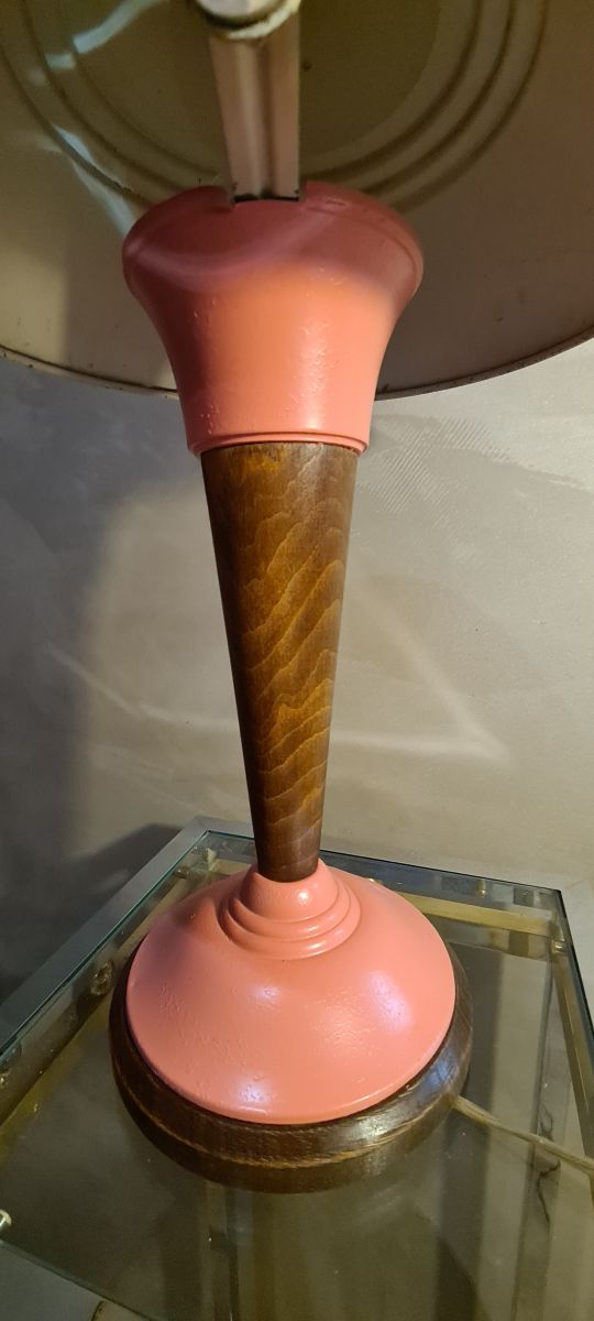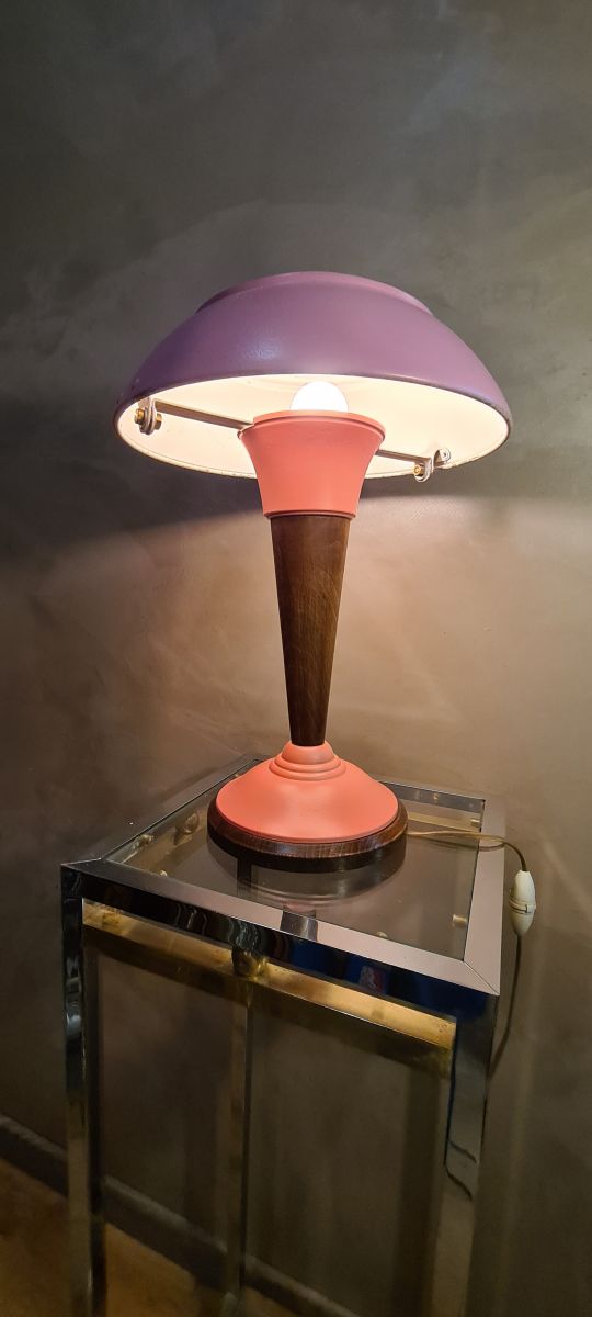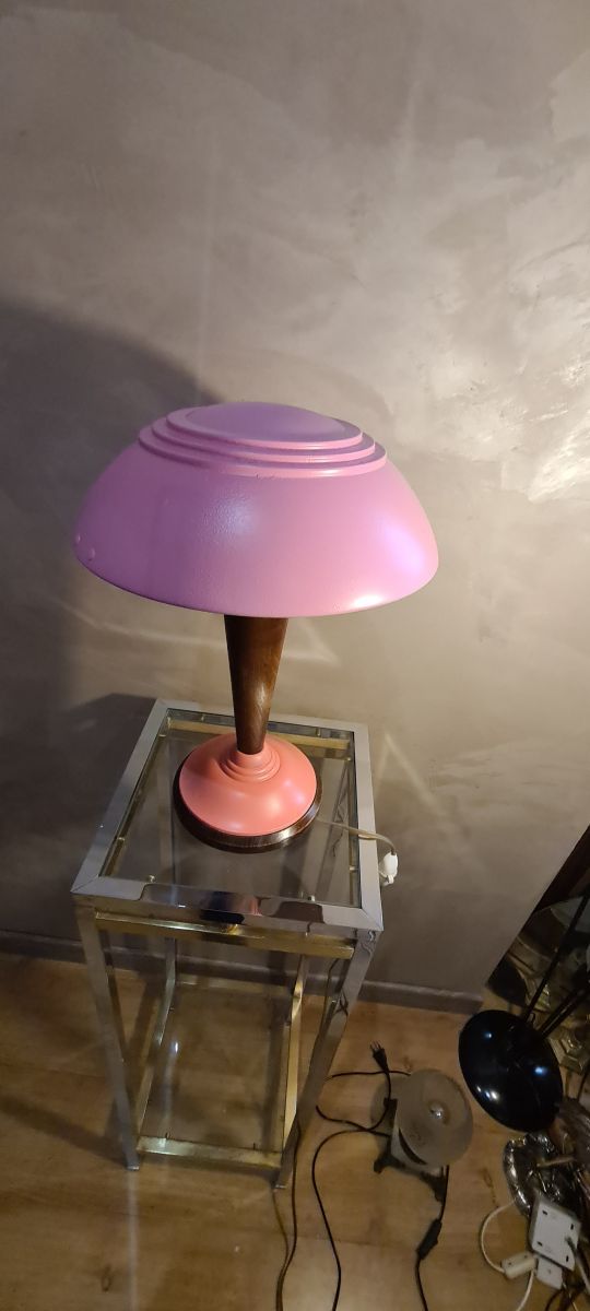 lampe alu art deco bauhaus 1940 rose 42x30 trace d usure normalsur peinture et bois legererement fendu ,