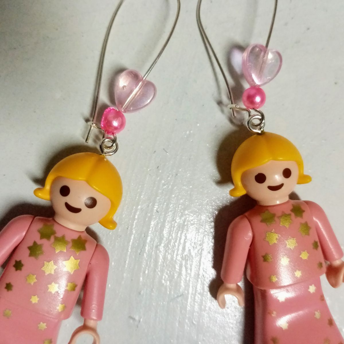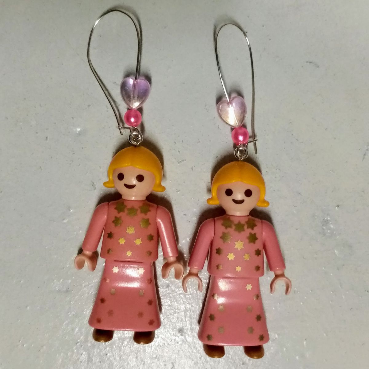 Boucles d'oreilles Playmobil/argentées, roses, dorées
