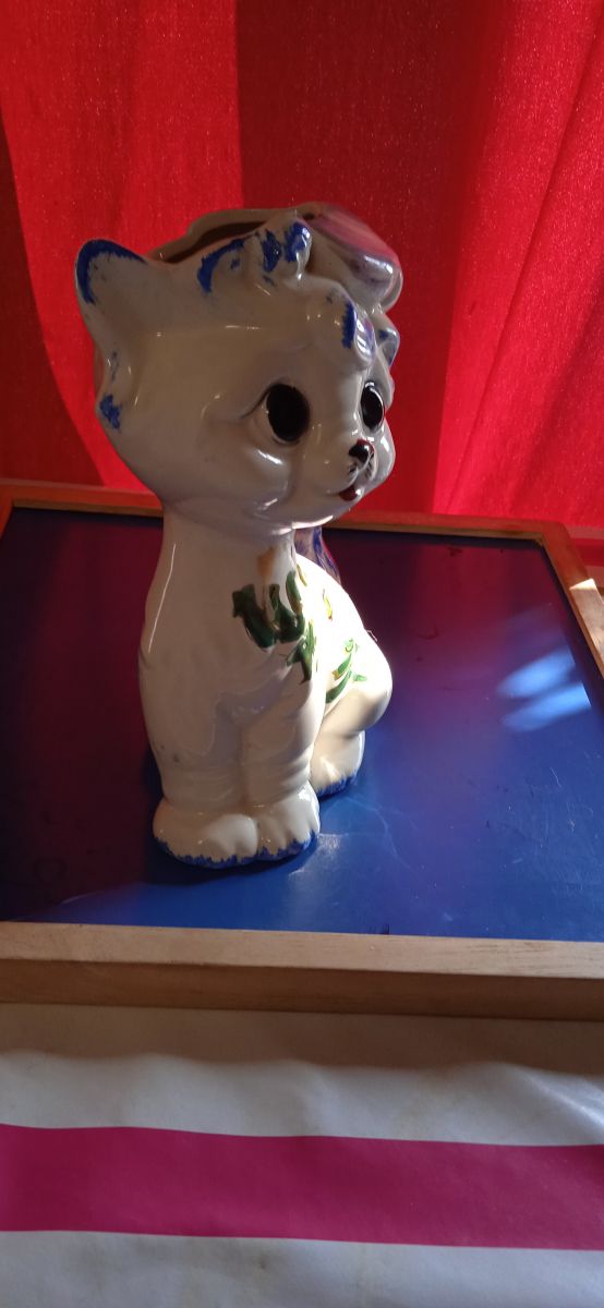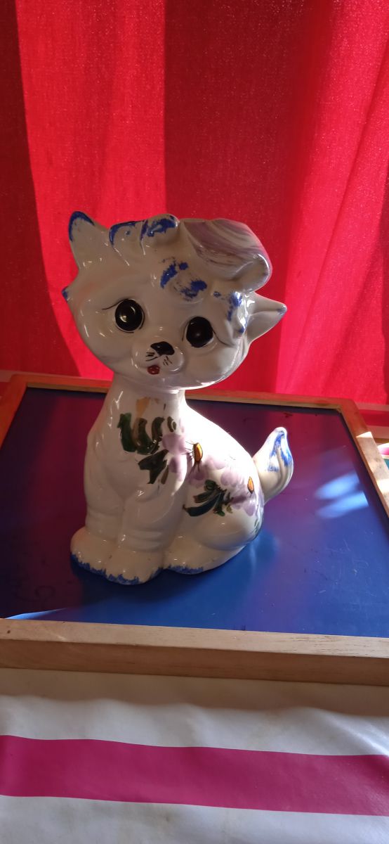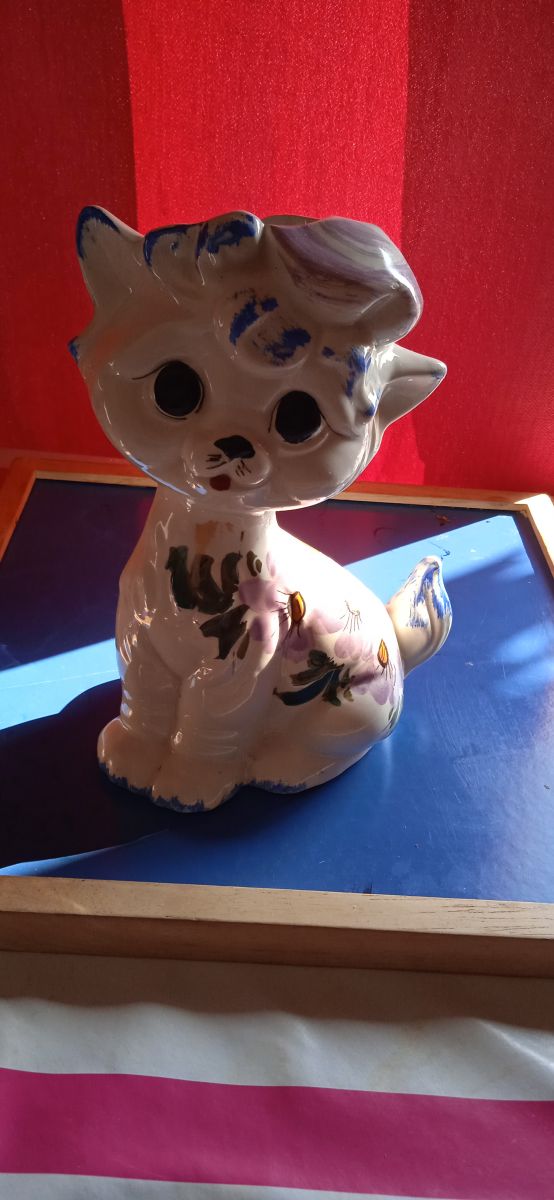 très jolie vase chat .en barbotine .Italie .en excellent état aucun fêles ni manque .très bien conservé .des années 60/70 .il est sublime .très jolie décoration d’intérieur .signé