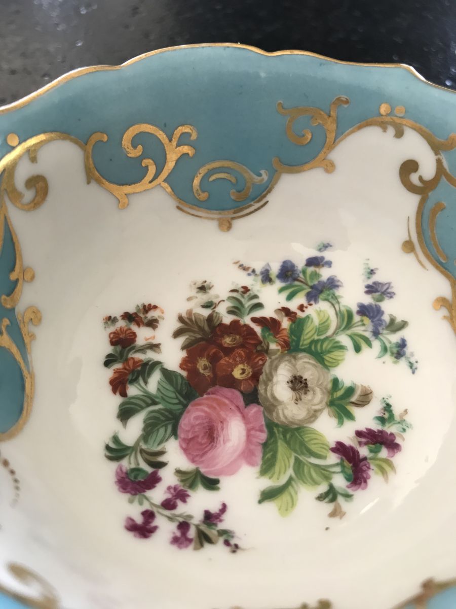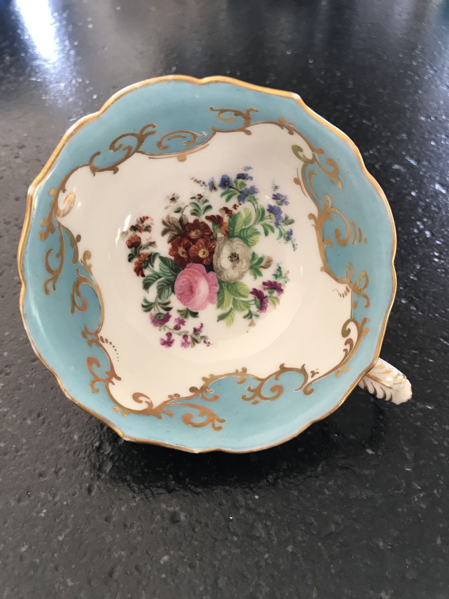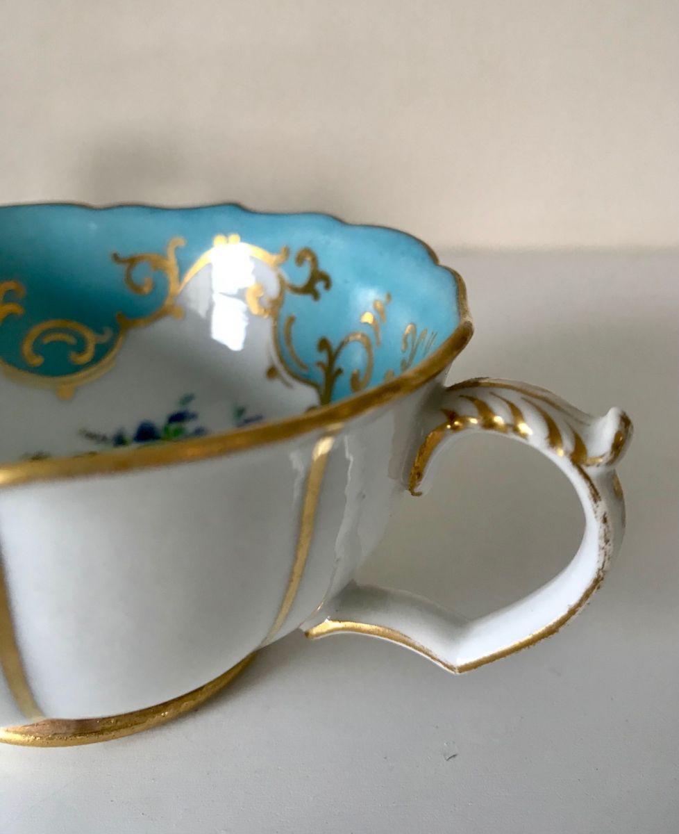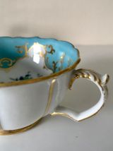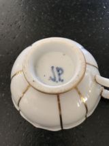 Tasse ancienne signée "JP" (Jacob Petit ?) en bon état, ni fêle, ni manque, les couleurs sont bien conservées et éclatantes, motif floral, dorure un peu passée par endroits.