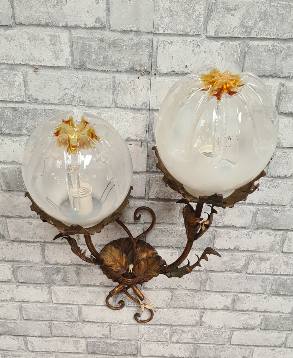 applique fleural vintage métal doré design italien 1960 murano mazzega