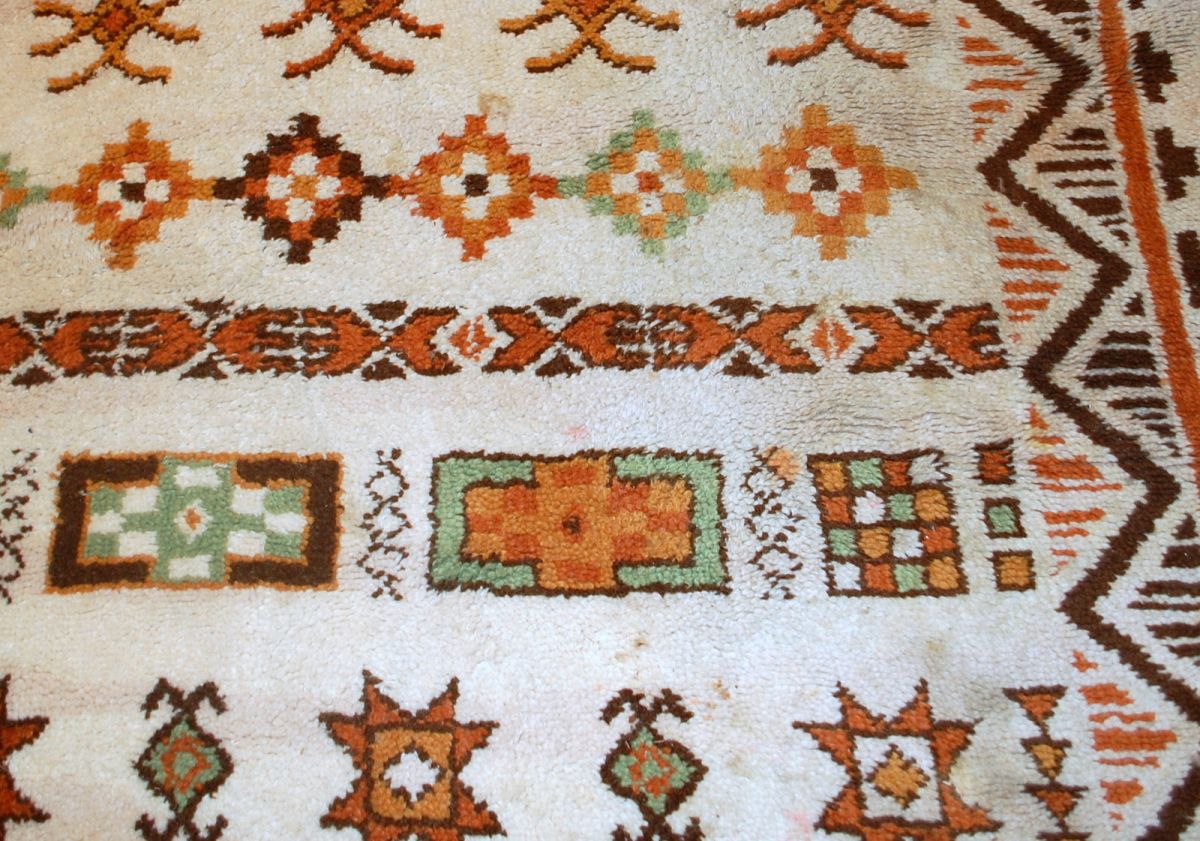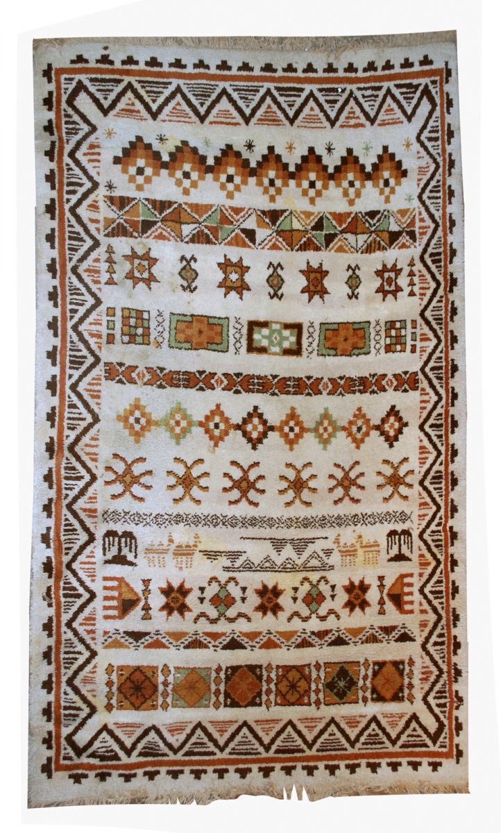Vintage European Savonnerie rug in original good condition. This rug made from the white soft wool in the middle of 20th century.