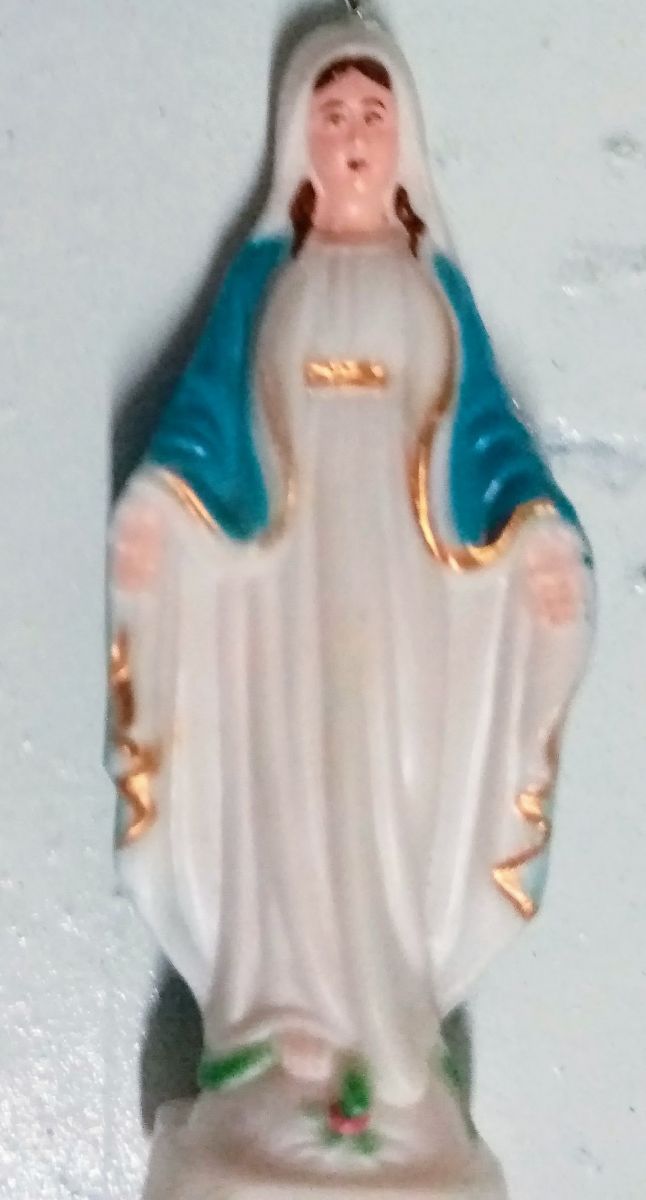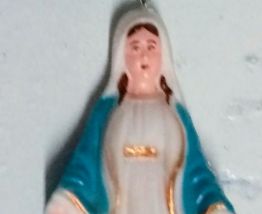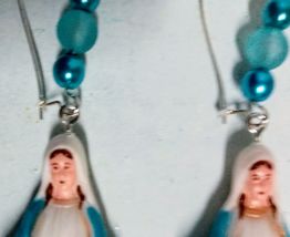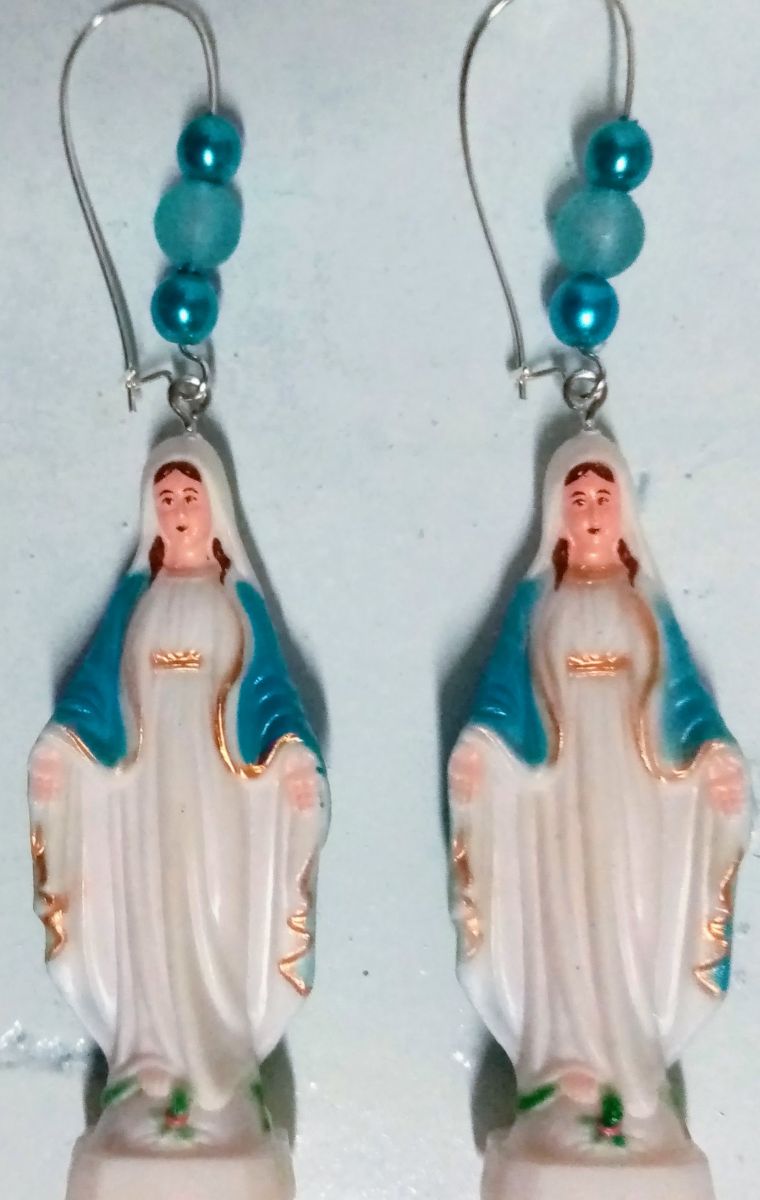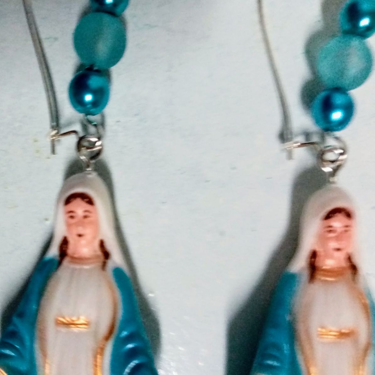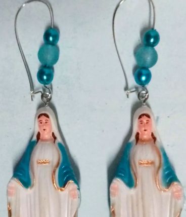 Boucles d'oreilles vierge Marie, statuettes résine et perles