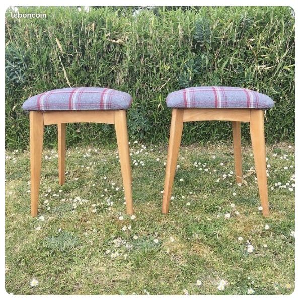 Tabourets vintage années 50 mousse neuve et couverture neuve en laine