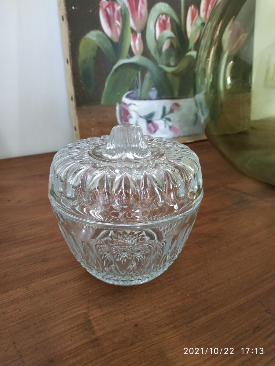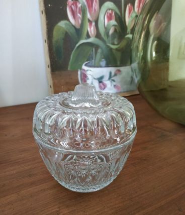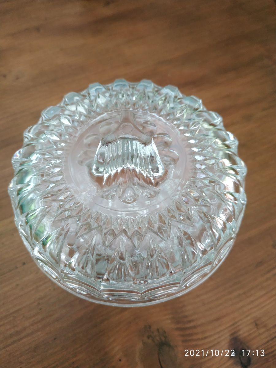 Bonbonnière ou sucrier en verre taillé en parfait état , ni fêle ni éclat.
