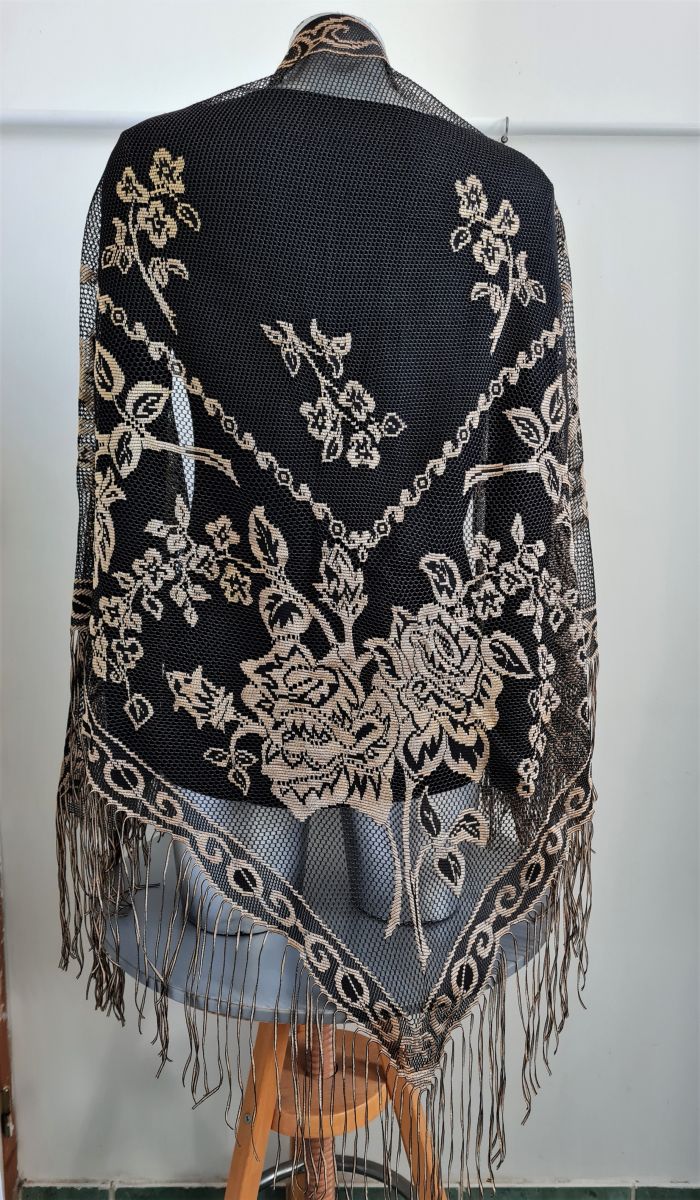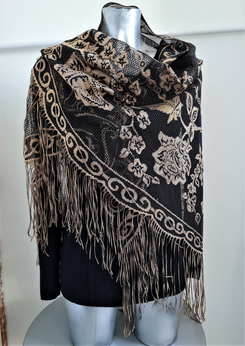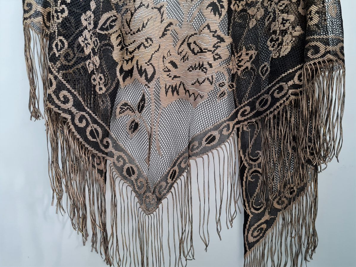 ✅ Châle Vintage Brodé en Fil doré - TBE - Taille Unique