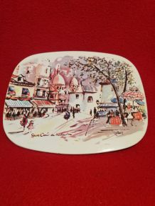 Dimensions du cadre: environ 40 x 18 cm. Dimensions de l’image seule: environ 34 x 12,5 cm. Le cadre est cassé sur environ 2 cm sur son coin arrière droit mais cela ne se voit pas de l’avant. Il y a également 2 ou 3 petites fissures légères au milieu du bas du cadre (voir photos). A part ça bon état d’usage.