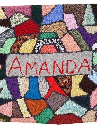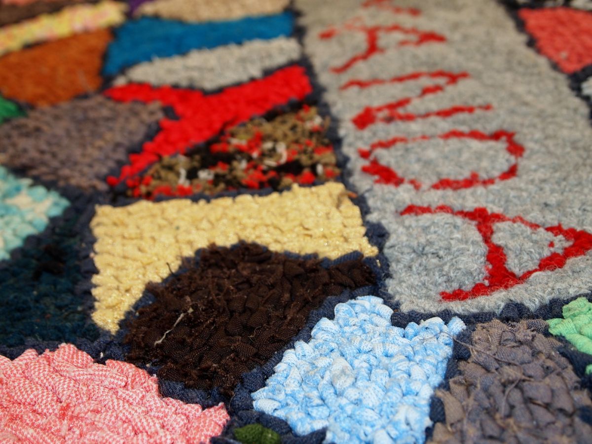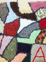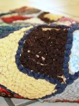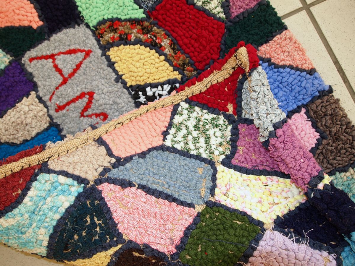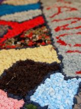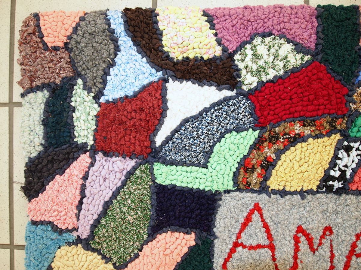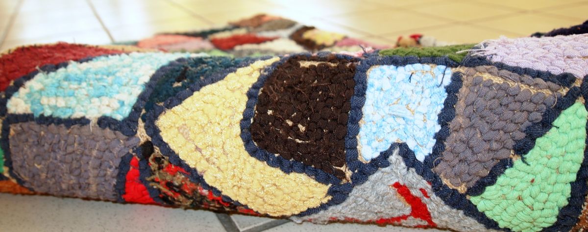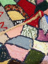 Handmade vintage geometric American hooked rug "Amanda". The rug is full of different colours, it has been made from cotton stripes.