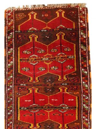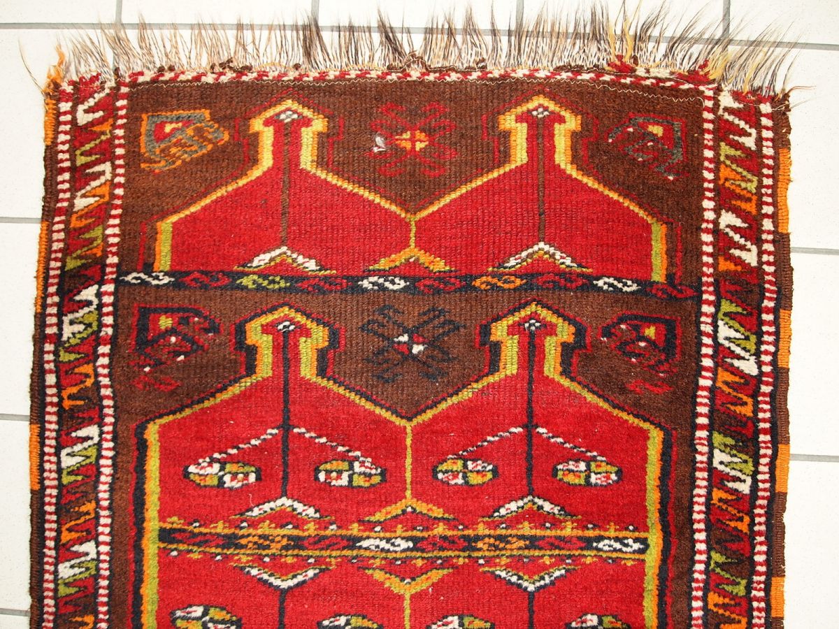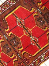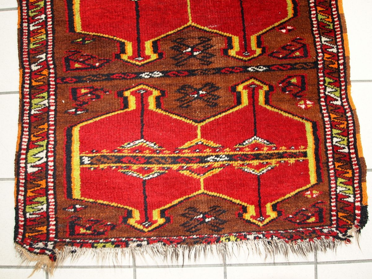 Antique Turkish Yastik rug in original good condition. It is in deep burgundy shade and bright red colour.