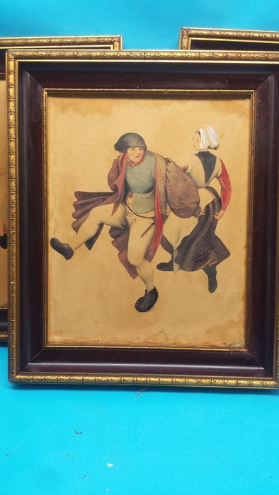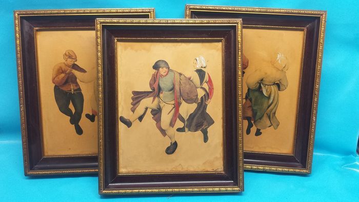 3 Lithographies Pieter Brueghel the Helder (1556) - Marrymakers from The Wedding Dance