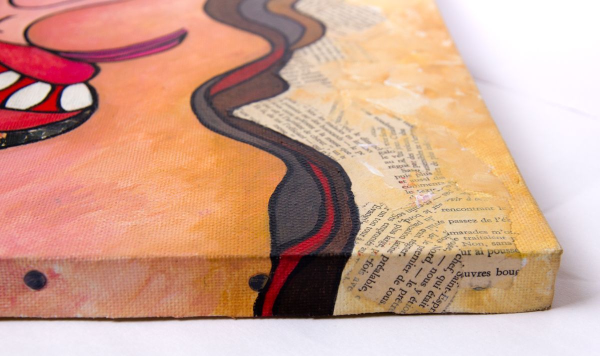 Côtés peints, toile pouvant être accrochée sans encadrement.