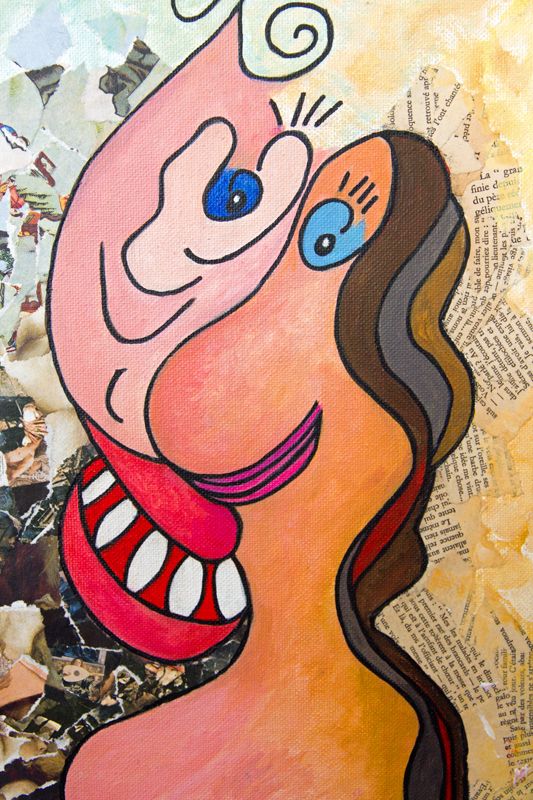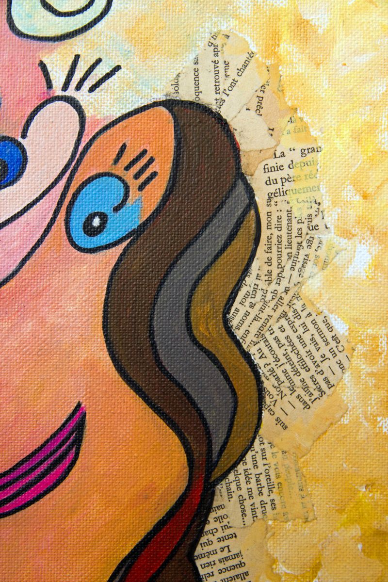 Portrait de femme peinture acrylique technique mixte. Peinture cubiste moderne. Artiste de France.