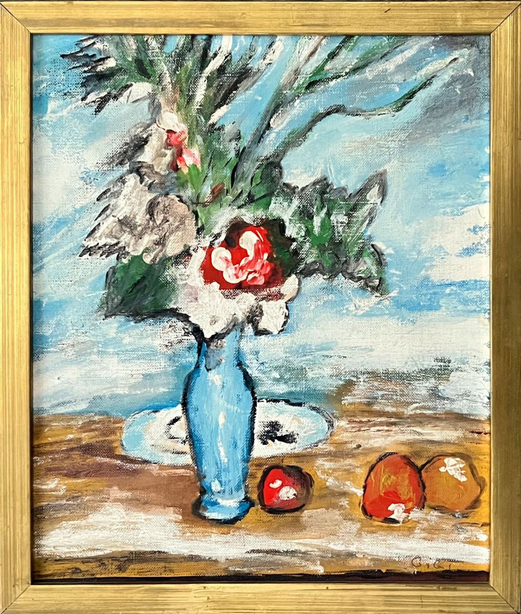 Le bouquet et les fruits , huile sur carton entoilé. 1985 Gigi