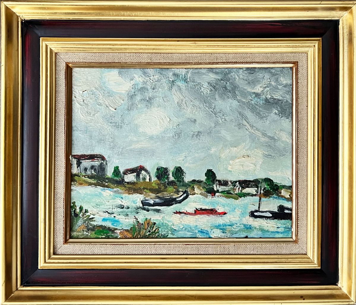 Bord de mer, huile sur carton toilé et encadré.1975. œuvre 18 X 24 cm.