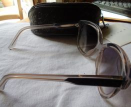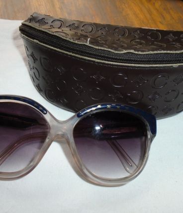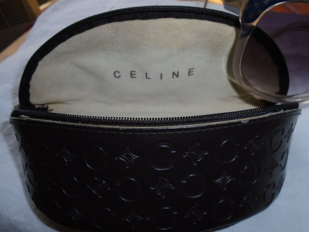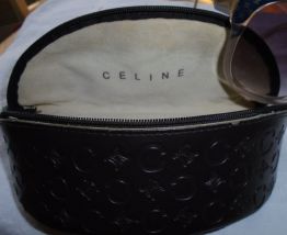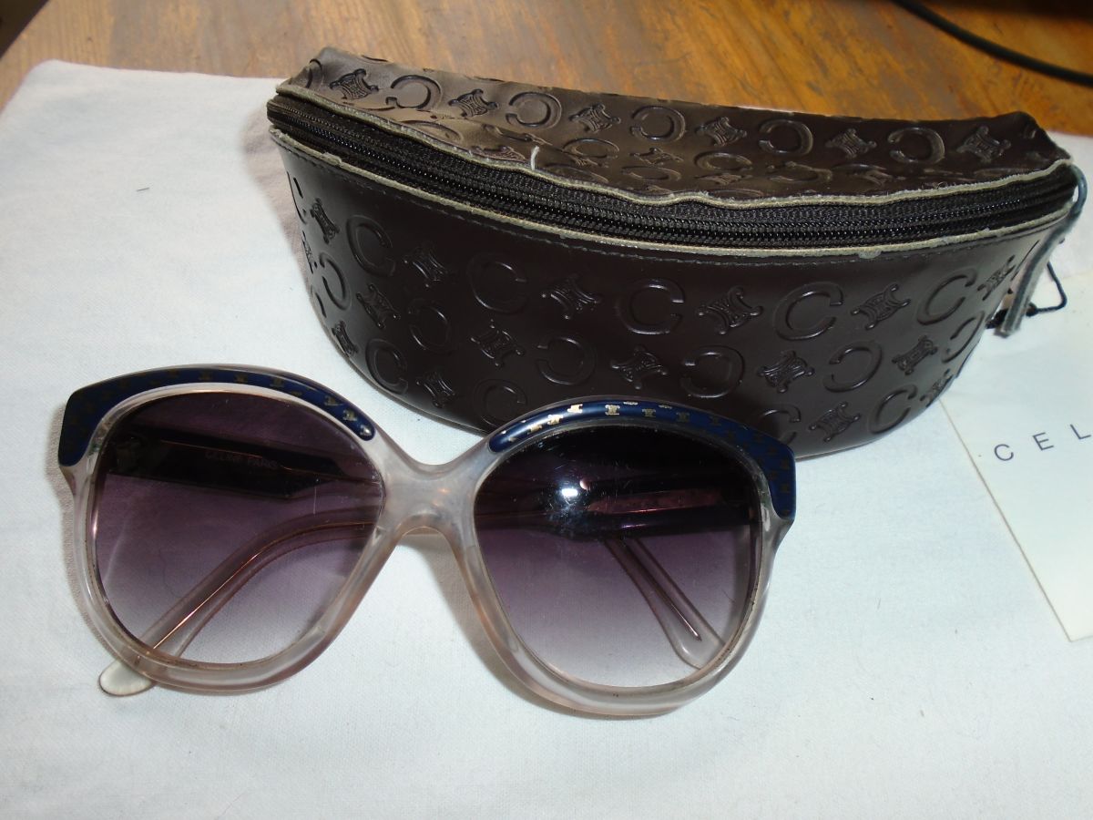 Lunettes de soleil beige transparent et bordure bleu signé céline tout autour