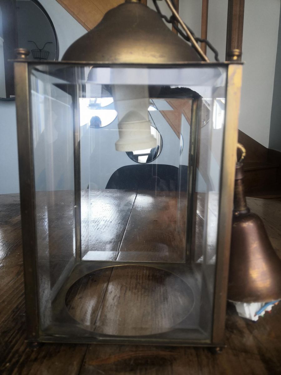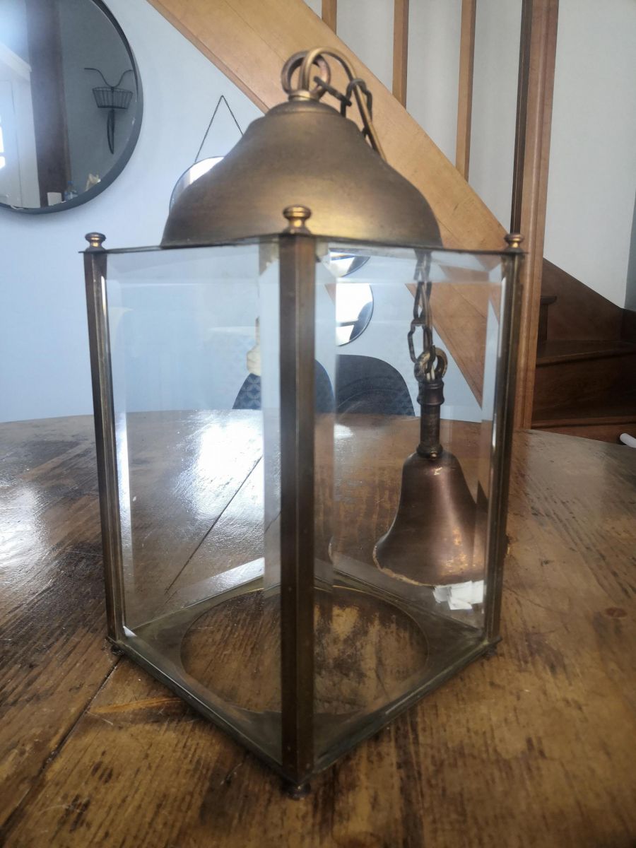 Charmante suspension lanterne ancienne en laiton avec les verres biseautés, des annees 30