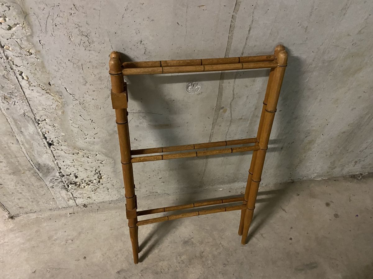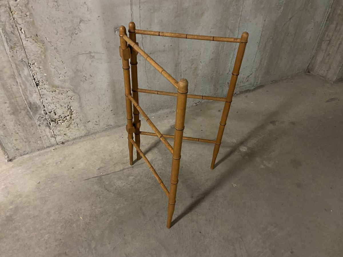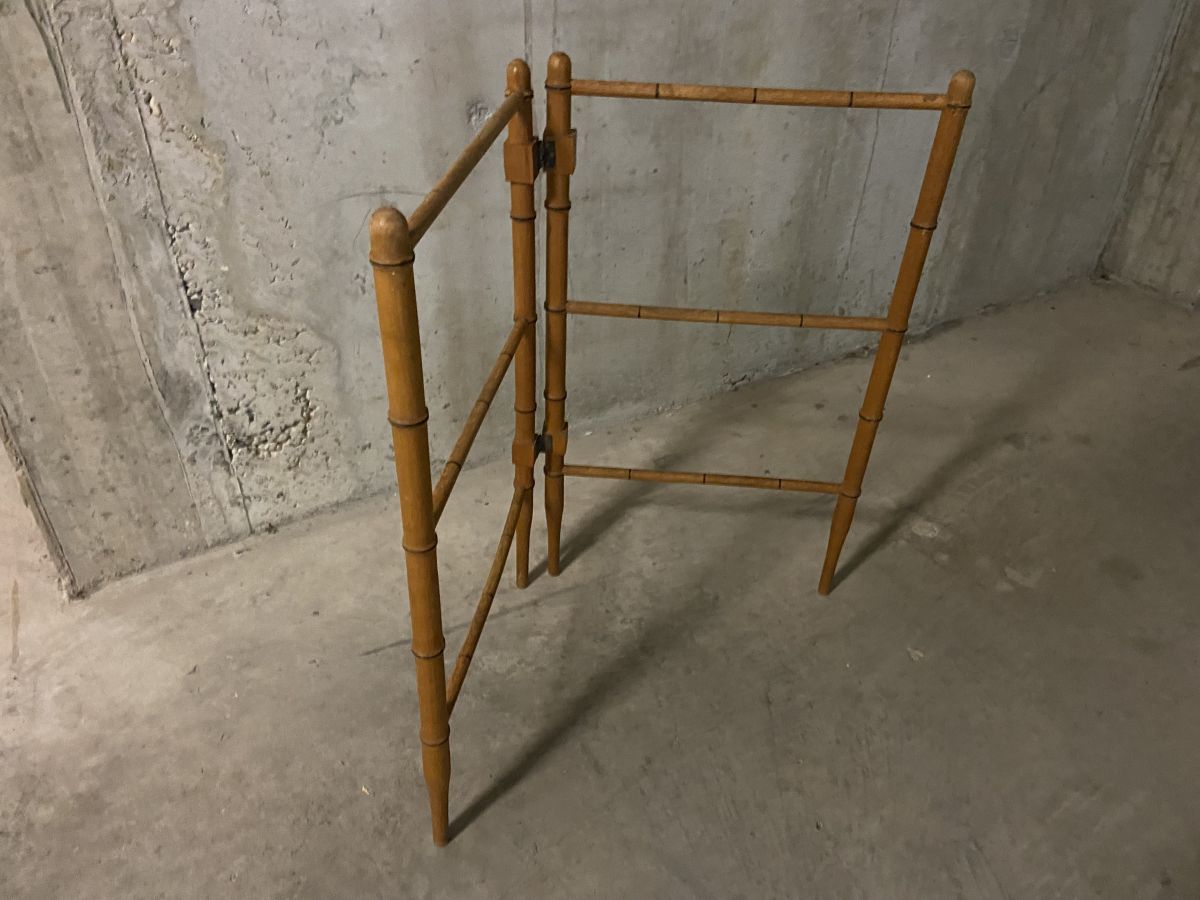 Porte-serviettes en bois des années 50, 2 battants, belle patine du temps, hauteur 75cm, largeur 88cm (2x44cm par battant), profondeur 6cm, bon état.