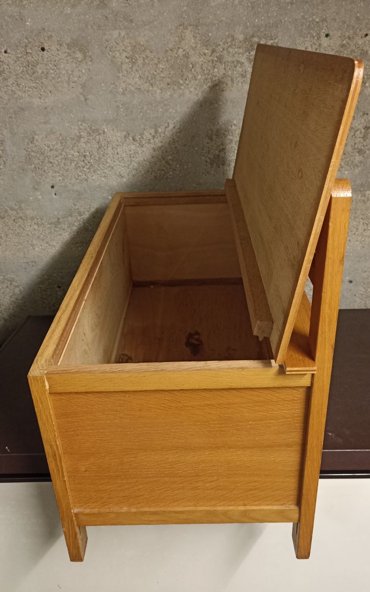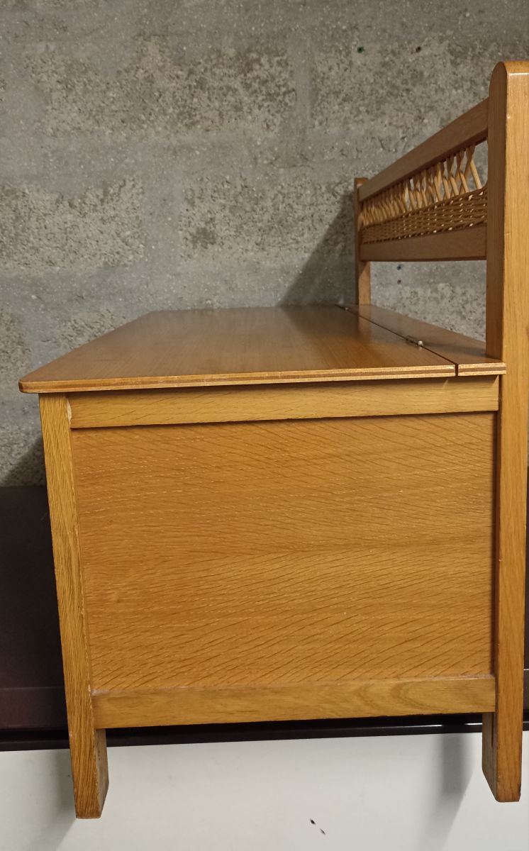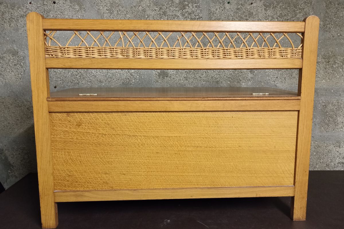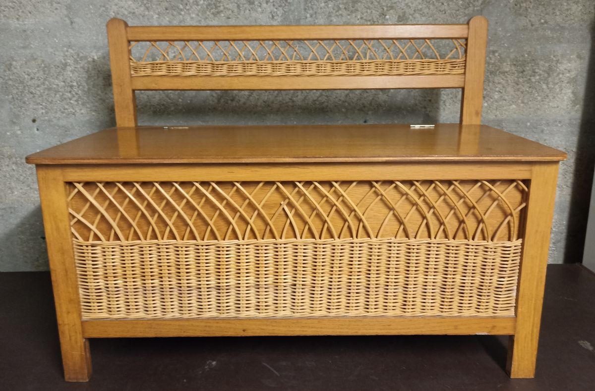 Coffre-banc en bois et rotin des années 60-70