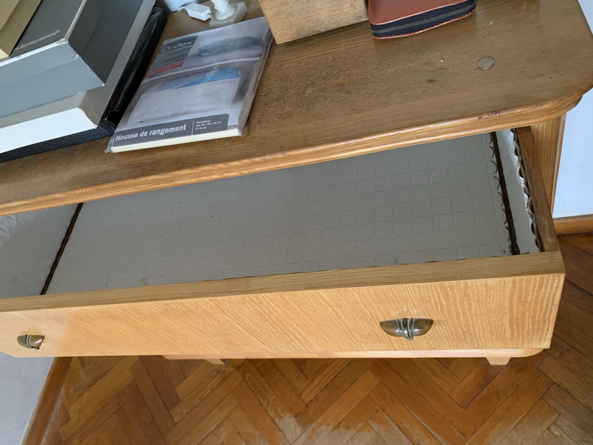 Le plateau a qq traces de patine mais bon état, pas d’éraflure sur les côtés