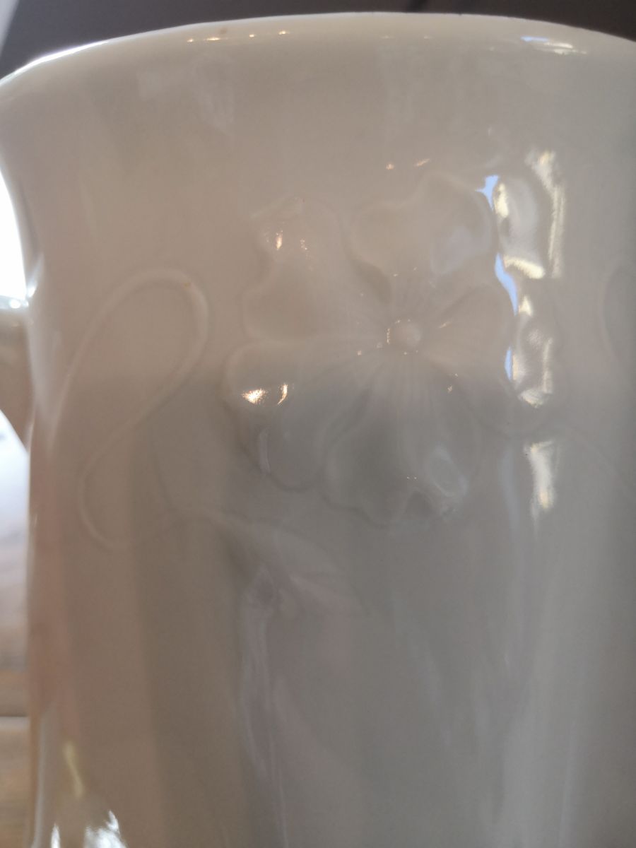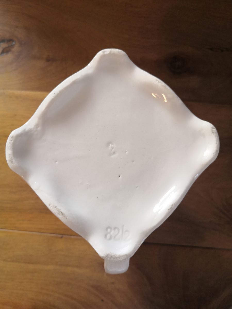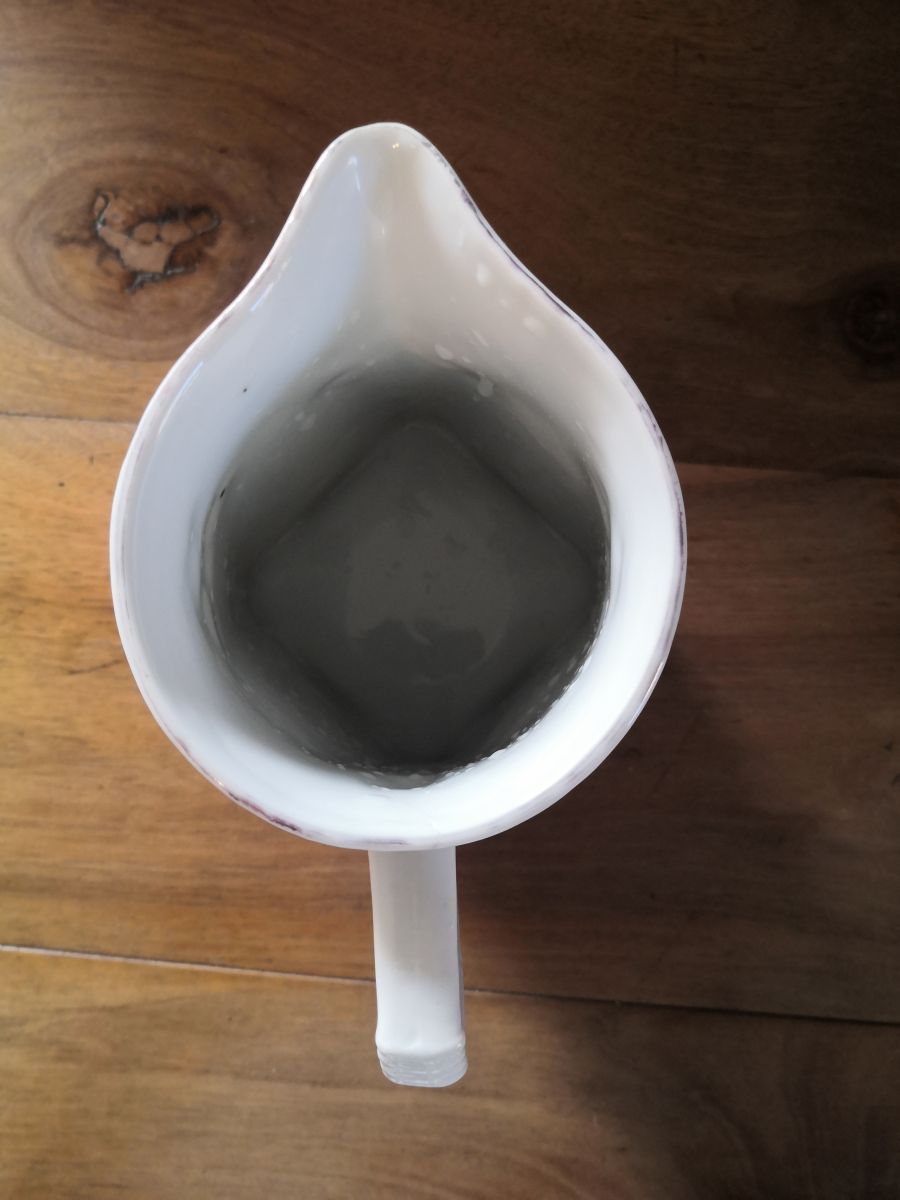 Un fin liseré doré sur le pourtour du col du pichet a subit les traces du temps. Présence de petites tâches de fabrication visibles (extérieur / intérieur) sur les 2 dernières photos.