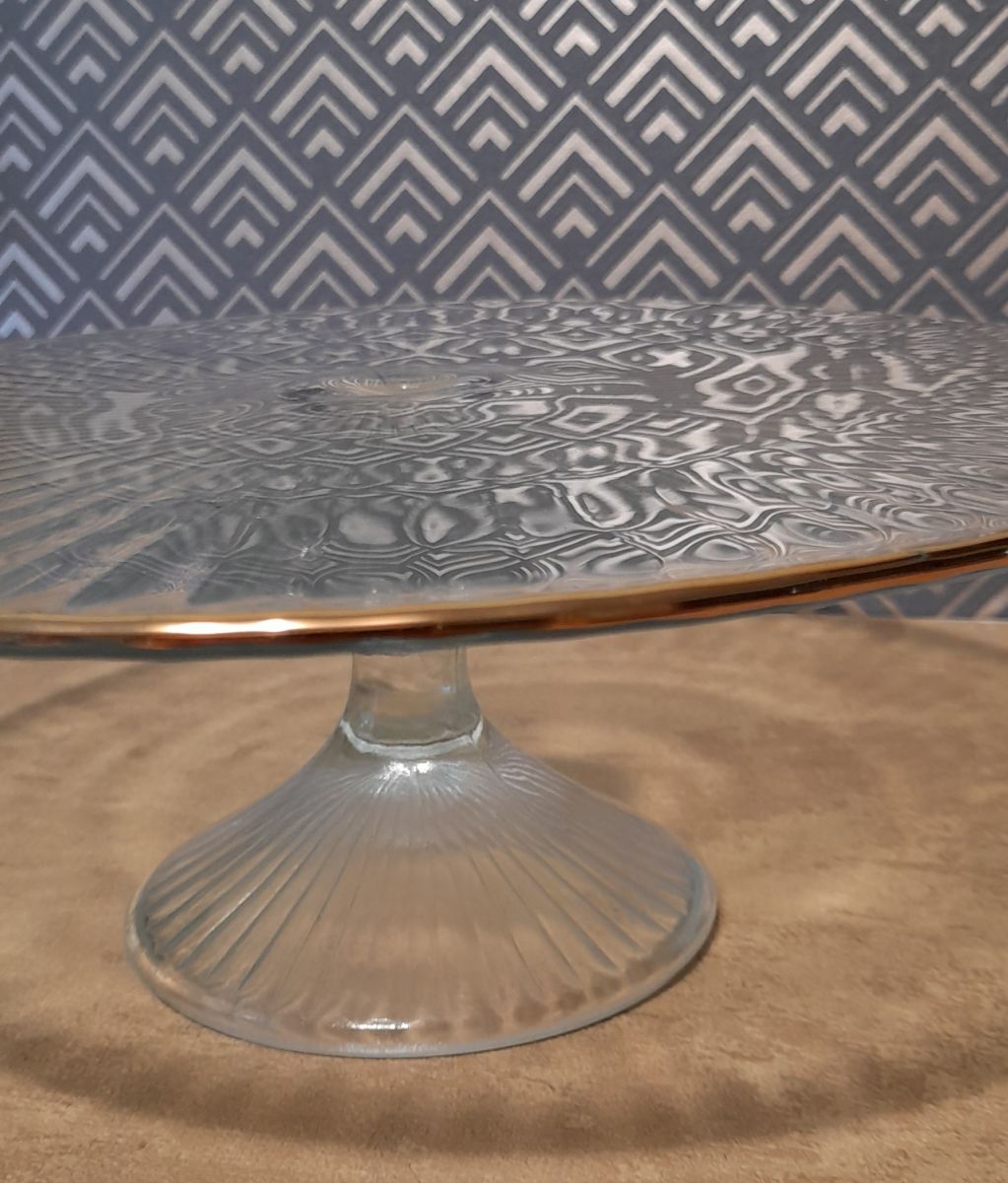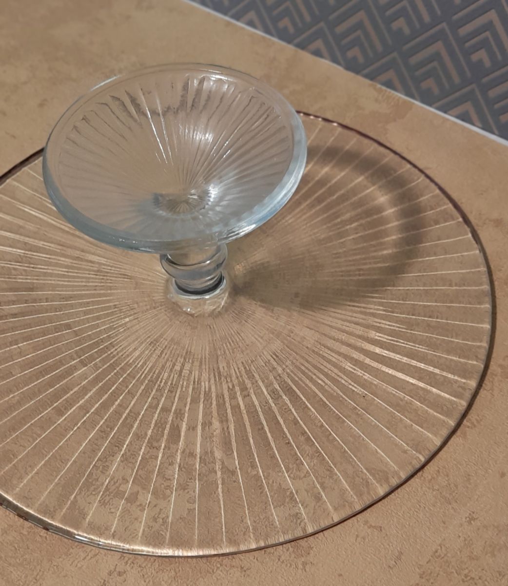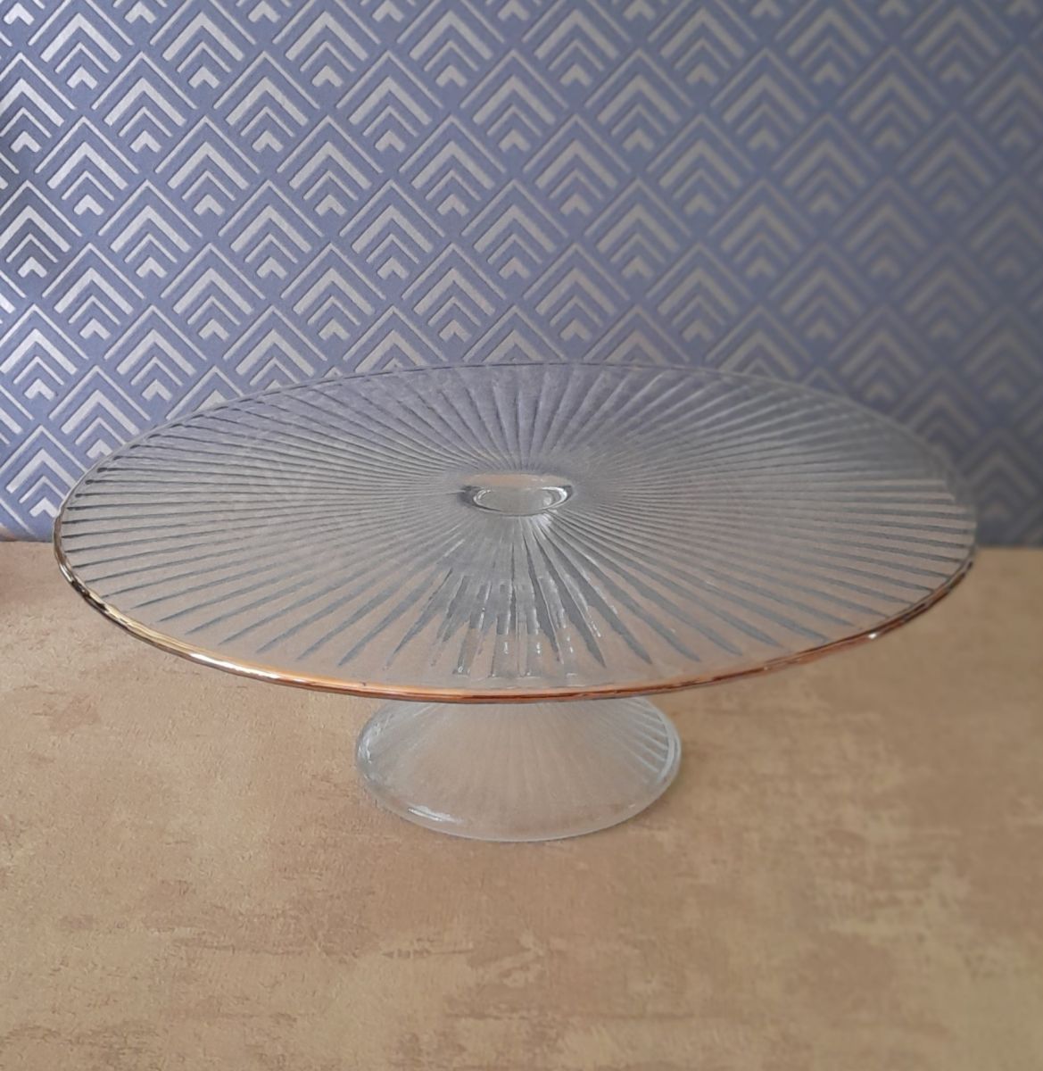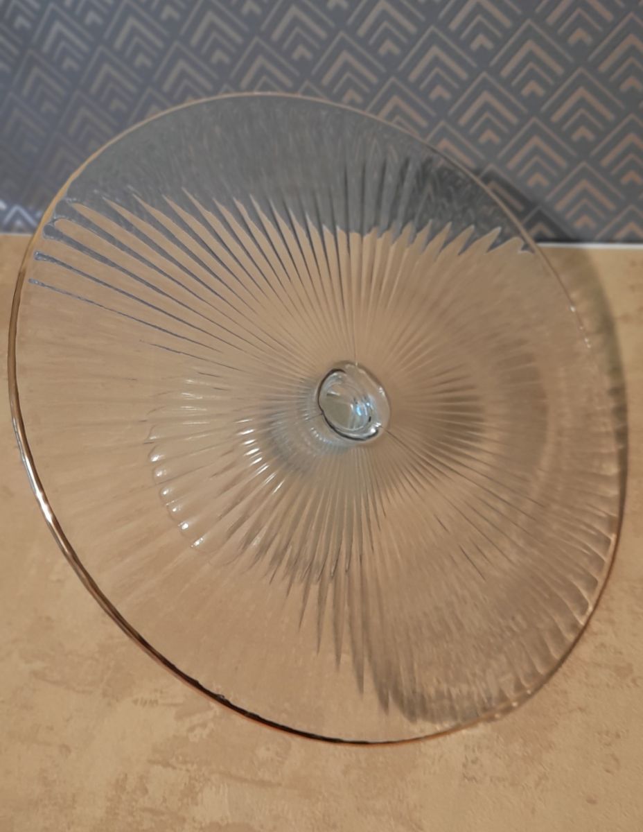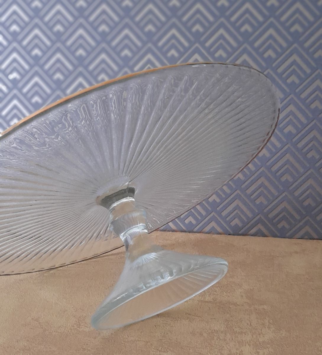 Plat à tarte, présentoir gâteaux en verre Art deco