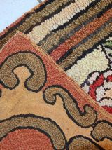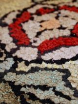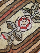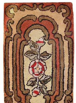 Decorative antique American hooked rug in good condition. Beautiful Victorian design with large red rose in the centre. Dominating colours are: brown, olive green, beige.