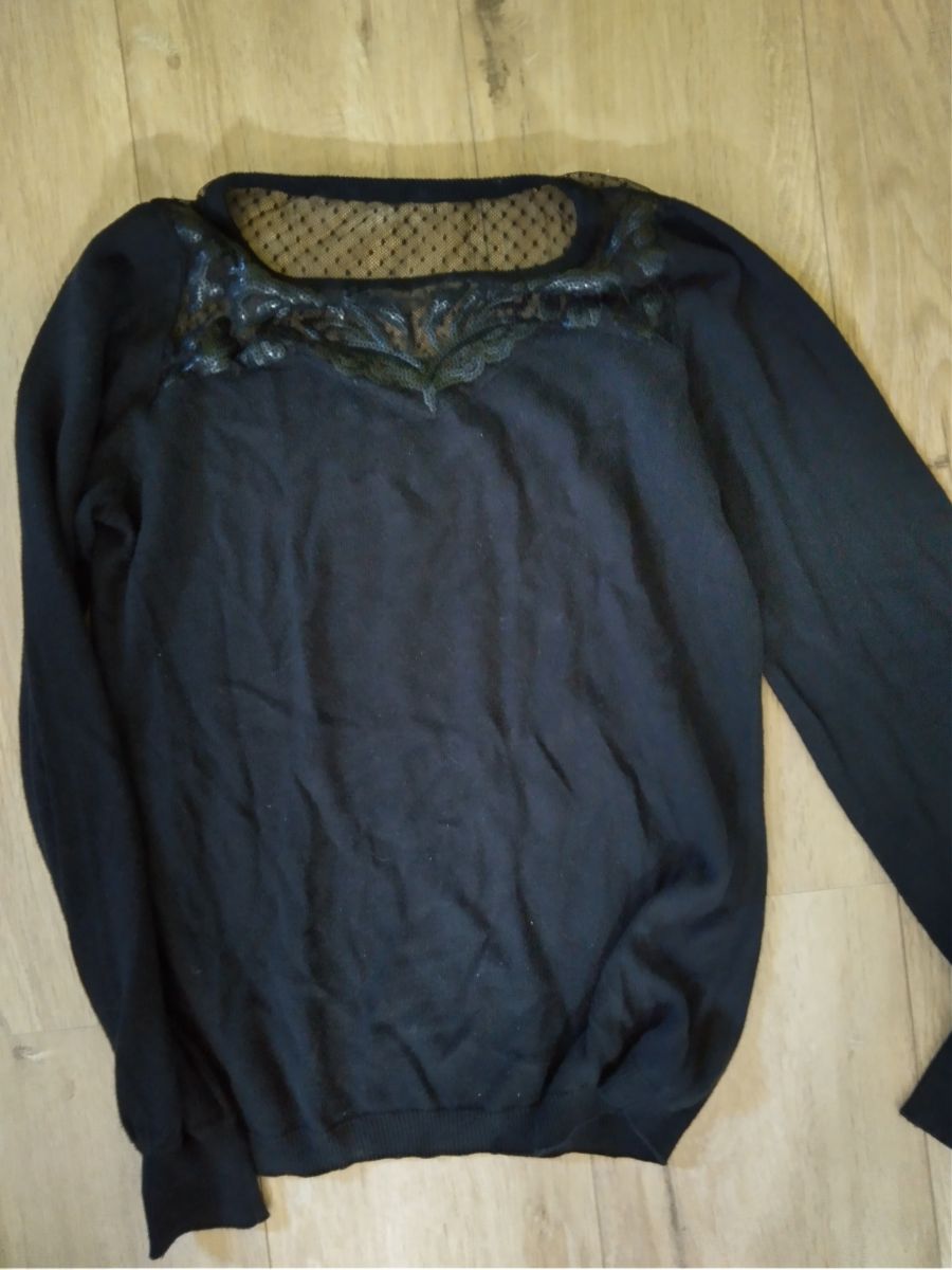 Pull noir à col brodé dentelle fleurs Femme taille 36/38
