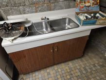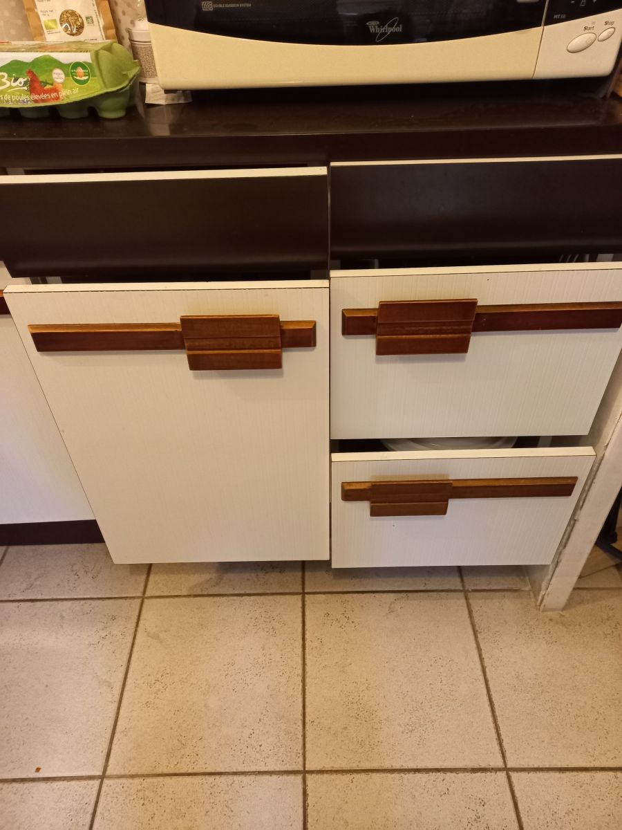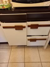 A SAISIR 5 Meubles de cuisine vintage année 80. Blanc/ bois