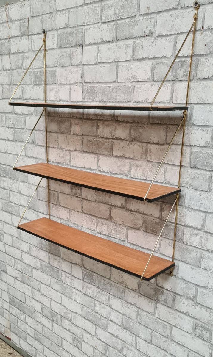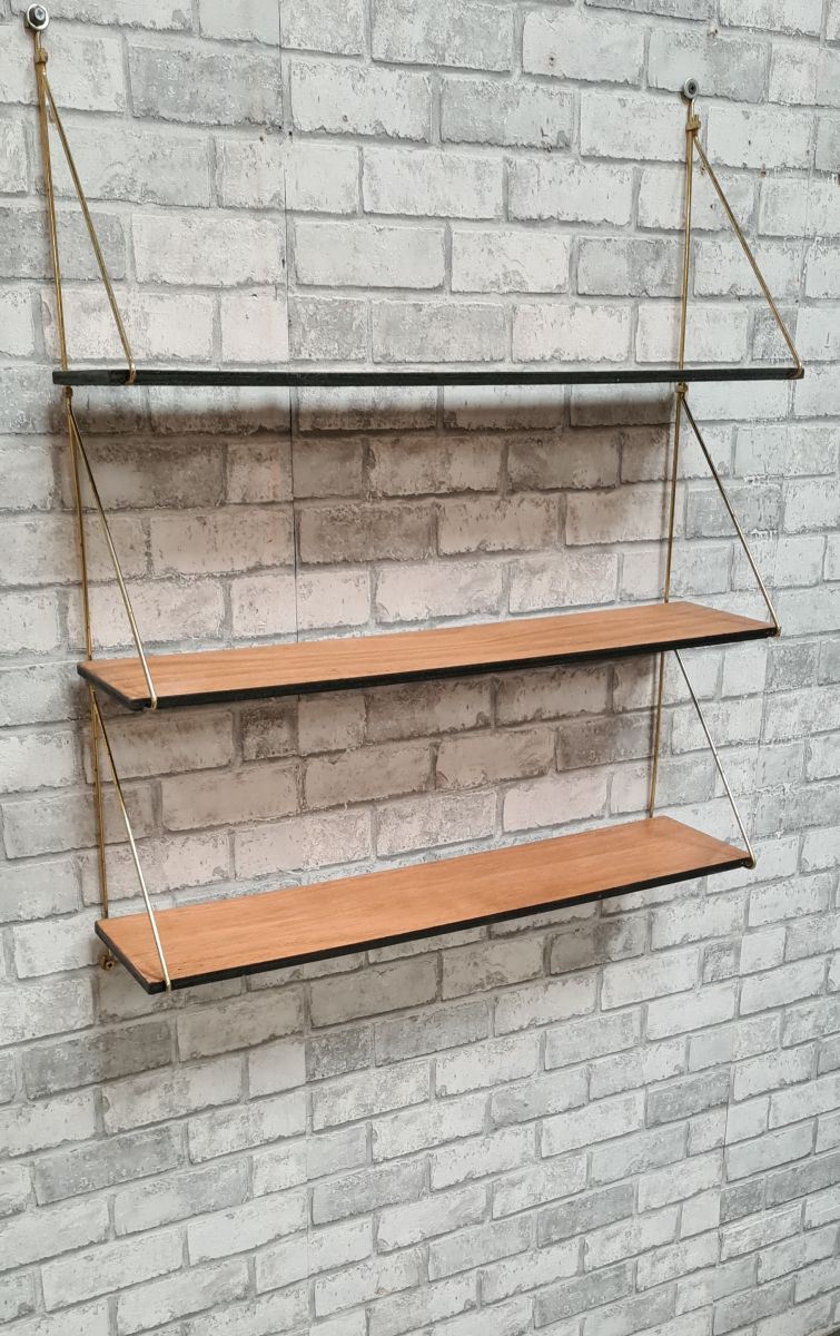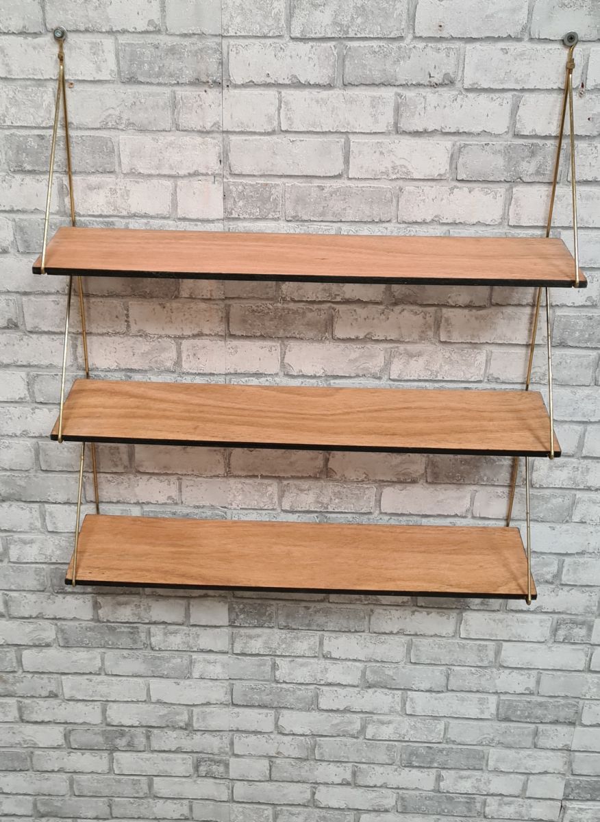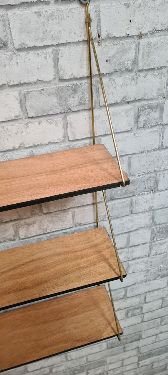etagere vintage scandinave 1960 bois et metal or 1960 ,70x