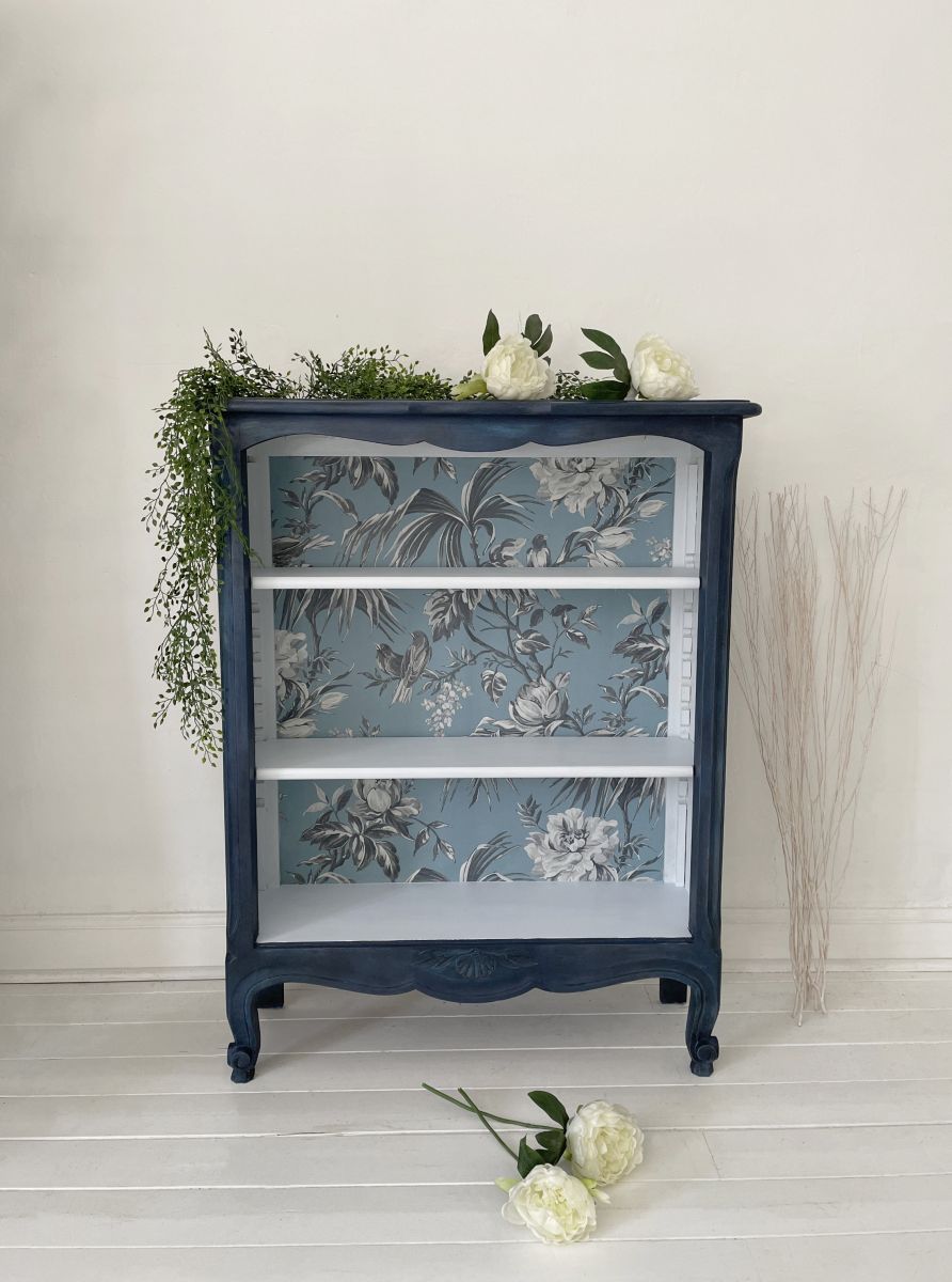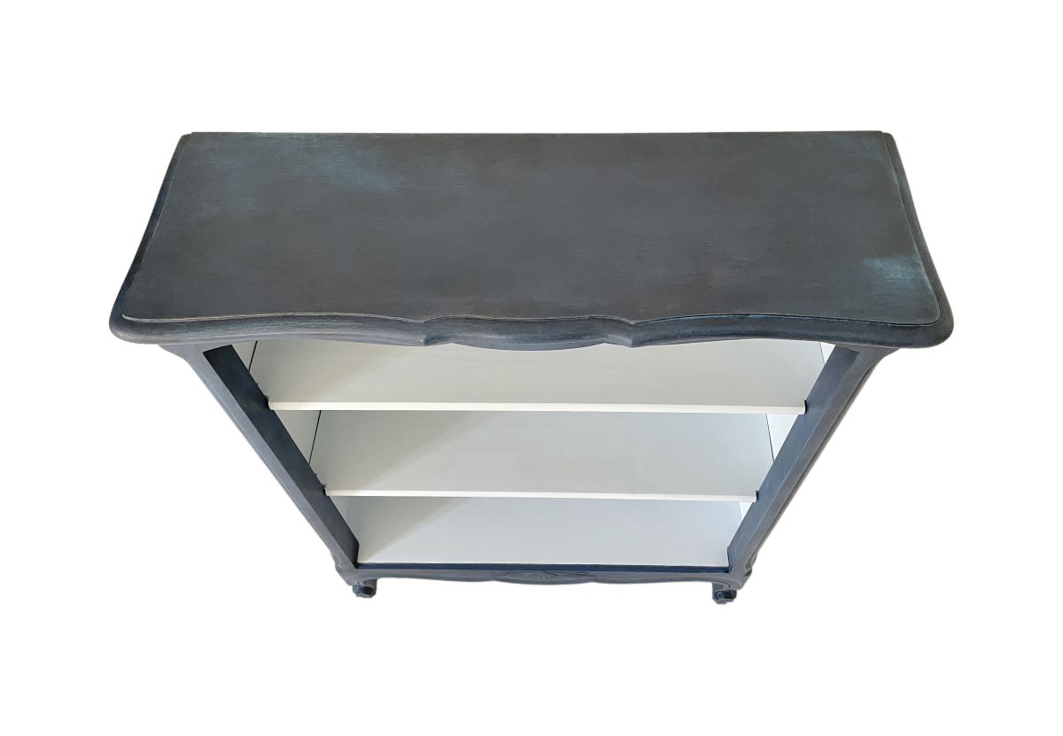 Une jolie petite bibliothèque, réinventée à l'aide d'un mélange personnalisé de peintures à la craie et de cires pour créer de la profondeur.