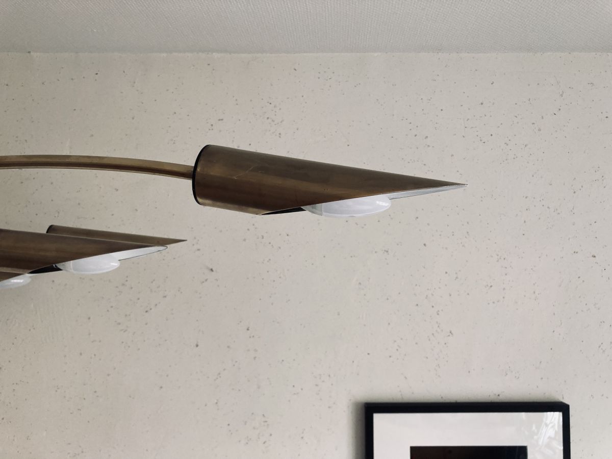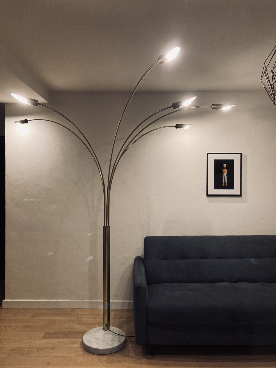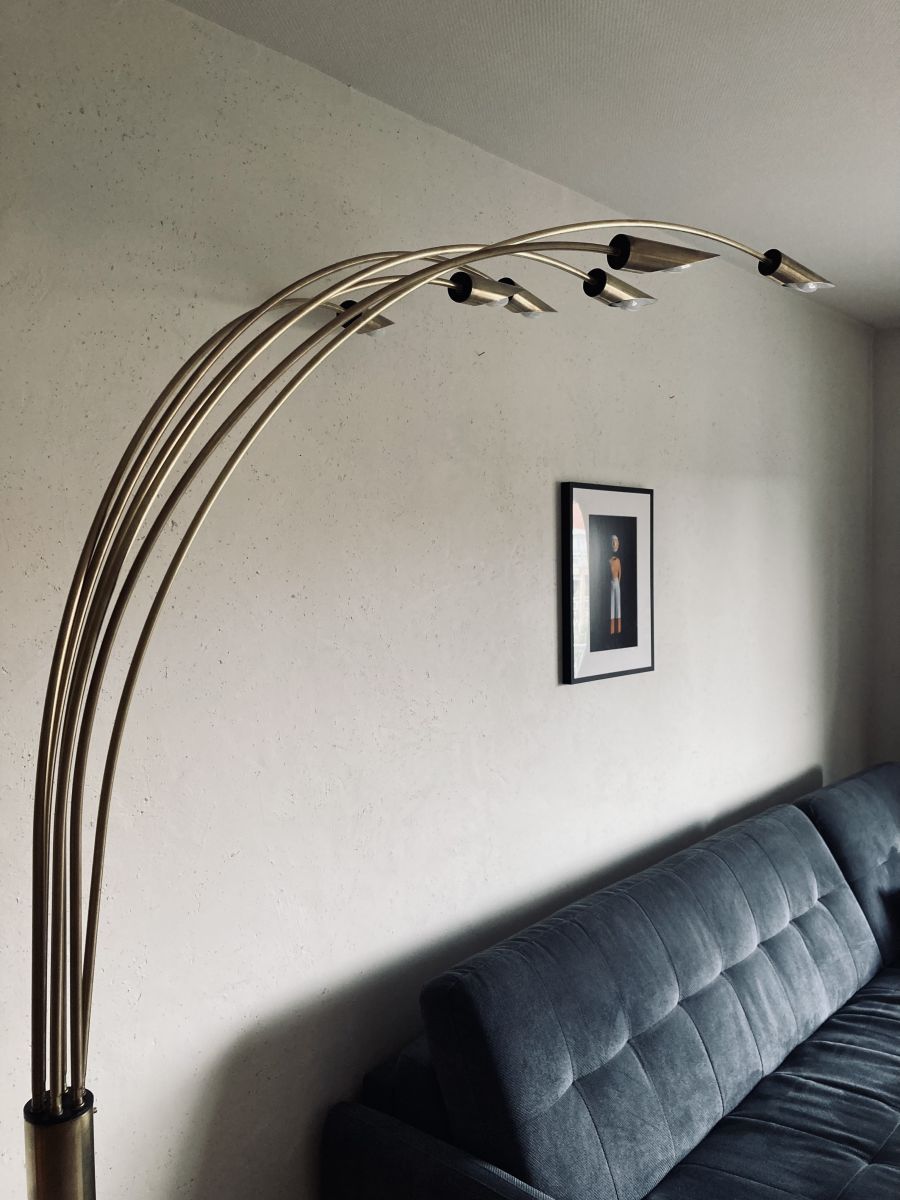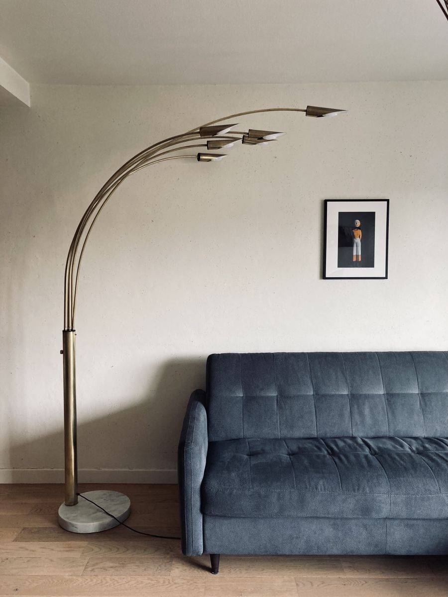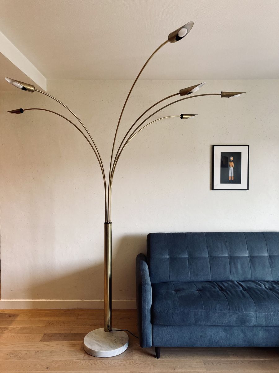 Lampadaire arc 6 bras laiton et marbre vintage années 70