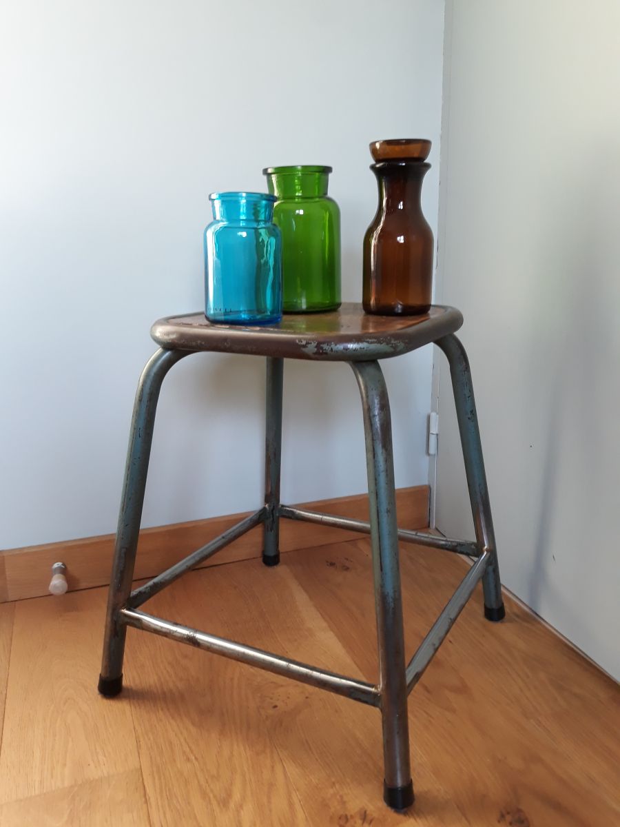 Joli flacon en verre moulé épais d'une belle couleur marron, ambré. Dessous, en relief, on peut lire « container made in Belgium », sur le bord bas « lever ». Il est muni de son bouchon à la forme originale, avec le joint en plastique en bon état. Il est en bon état général, ni fêle ni éclat mais quelques traces du temps : petites rayures et marques. Il mesure 19 cm de haut bouchon compris, 7 cm de diamètre au goulot et pour le bouchon, 8 cm de diamètre pour le corps et pèse 465 g.