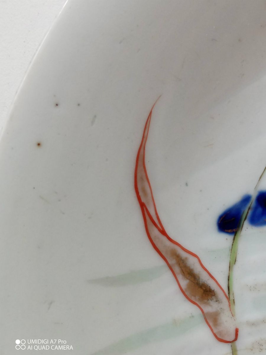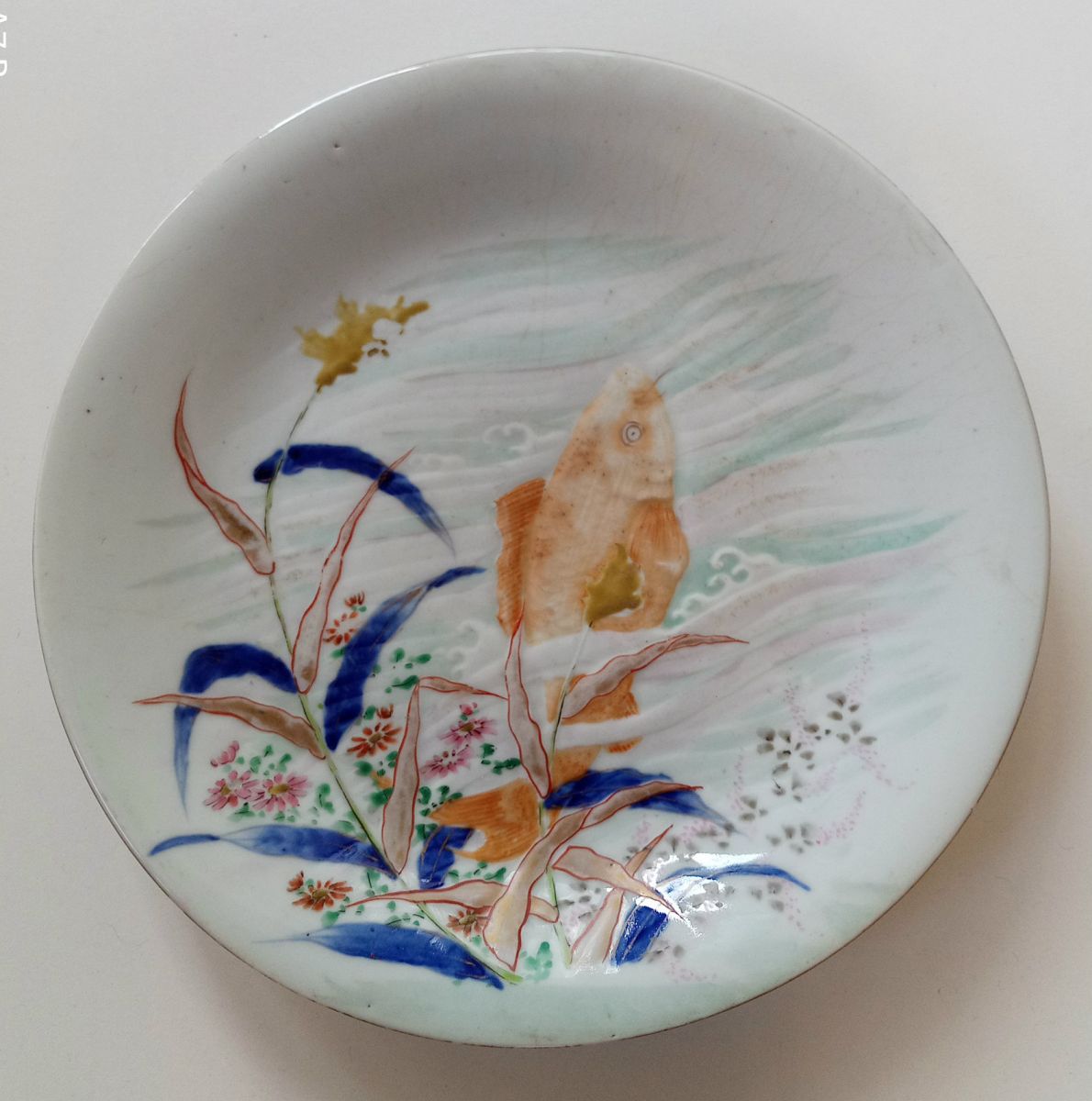 Ancienne assiette japonaise, de la periode meiji. En porcelaine, peinte a la main. pas de signature au dos, mais defauts de cuissons.