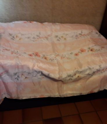 Dessus de lit/jeté de lit 1 place, avec un très élégant motif floral en recto et un verso uni, couleur rose/saumon, doux et chaud.