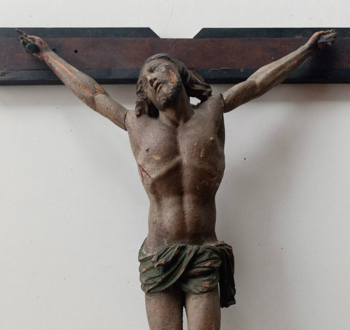 Magnifique Christ en croix, polychrome, du 17e siecle