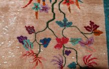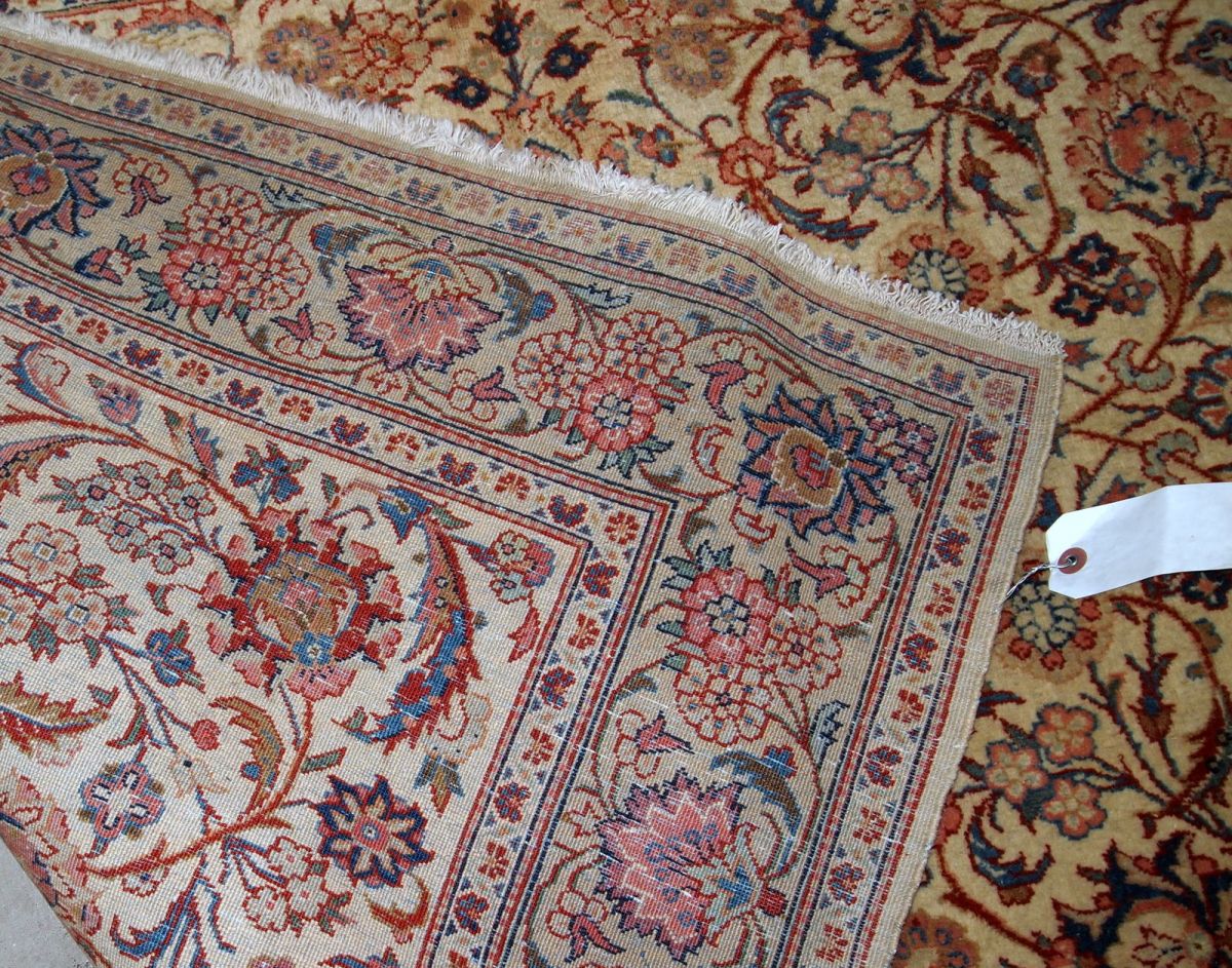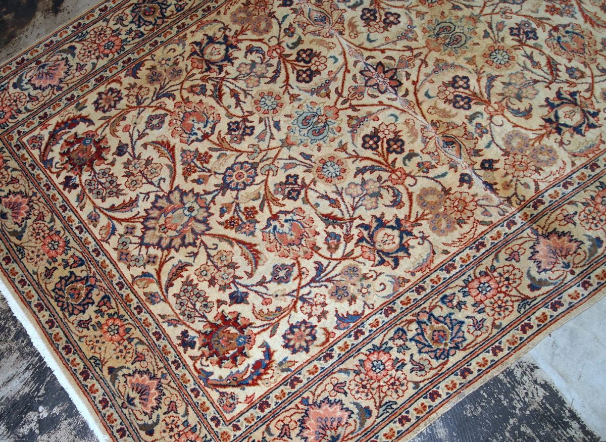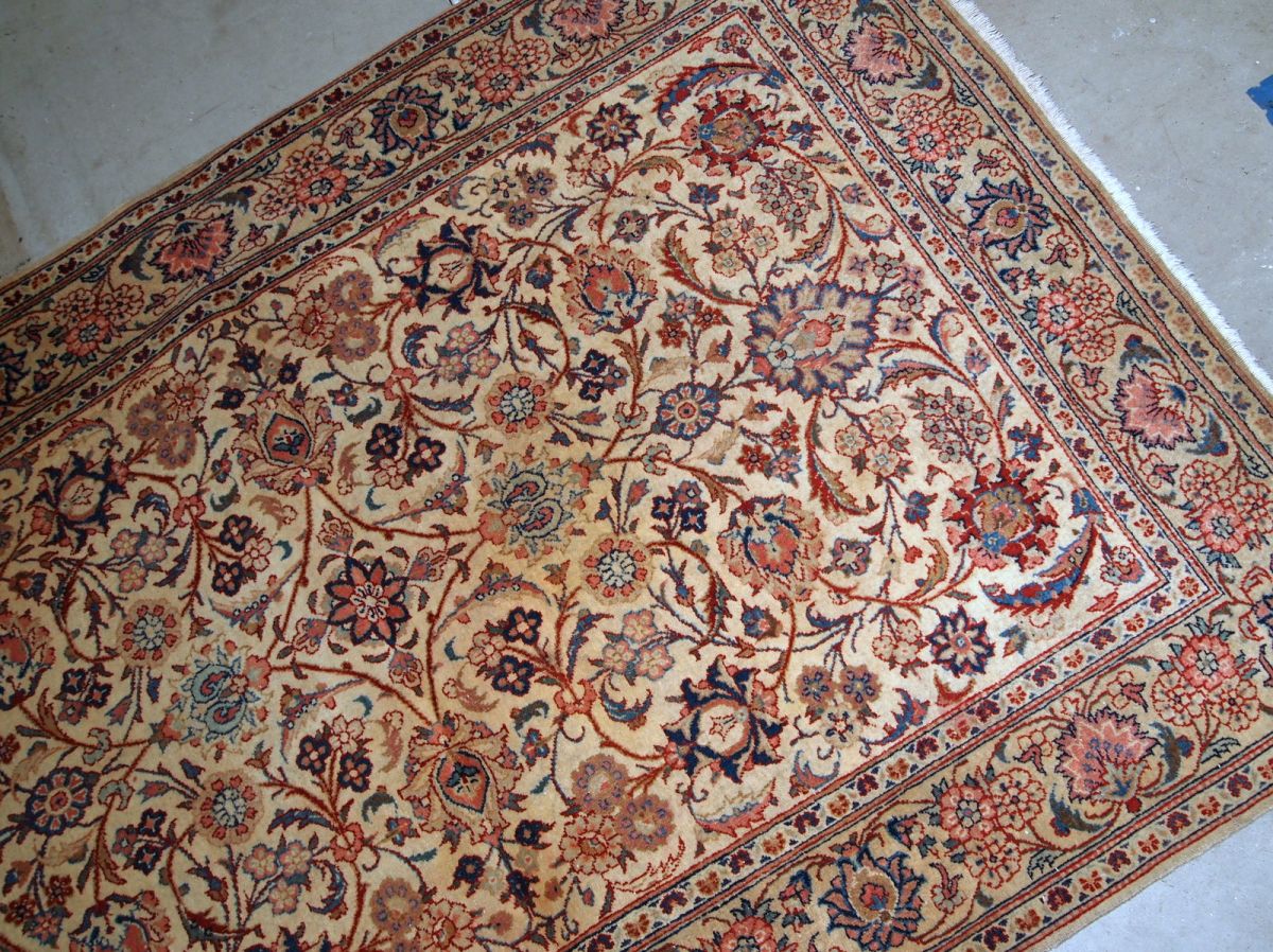 Handmade antique Kashan rug in light shade of beige. The rug is in original good condition from the beginning of 20th century.